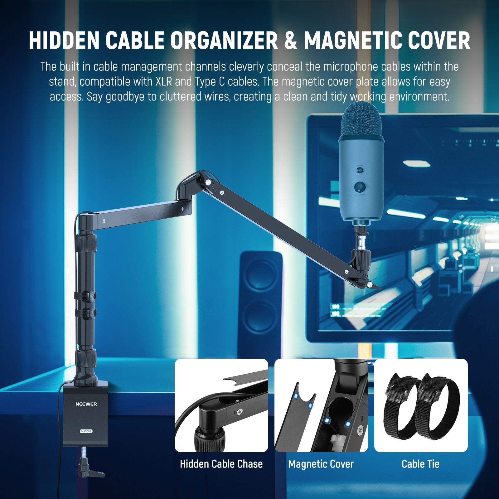 - Organizzatore di cavi nascosto e copertura magnetica - I canali di gestione cavi integrati nascondono abilmente i cavi del microfono all'interno del supporto, compatibili con cavi XLR e Type-C. La piastra di copertura magnetica consente un facile accesso. Dite addio ai cavi disordinati, creando un ambiente di lavoro pulito e ordinato, un accessorio essenziale per i creatori di contenuti e gli influencer.