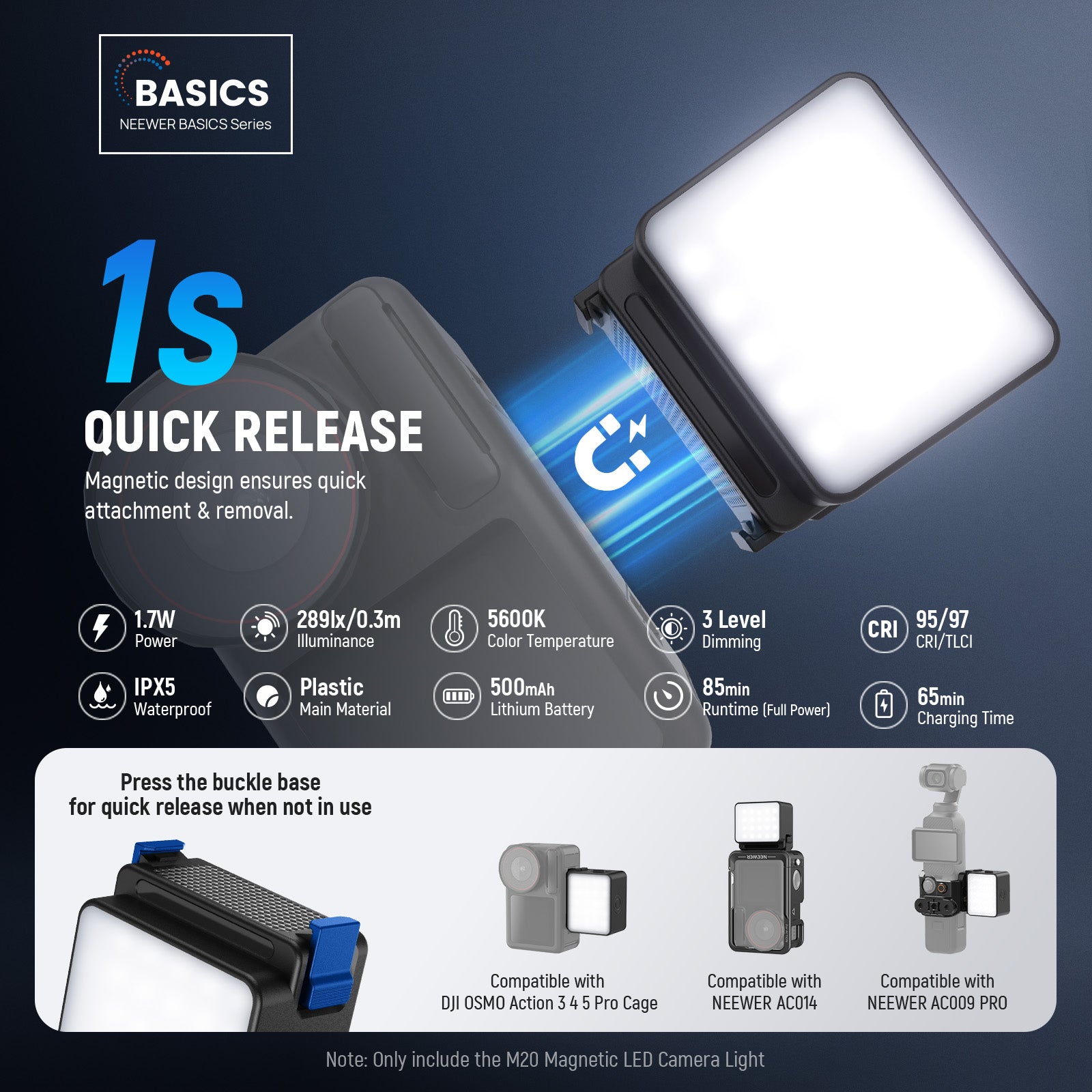 Product detail of the NEEWER M20 Magnetic Mini Light for OSMO Action 3/4/5 PRO