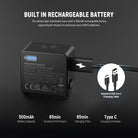 • Built in Rechargeable Battery- The camera light attachment has a built in 500mAh rechargeable battery, supporting 85 minutes of continuous use at 100% brightness. Fully recharged within 65 minutes using a portable charger or other USB power sources via USB C charging to provide prolonged lighting for selfies, vlogging, video recording, filming, videography, photography, YouTube TikTok social media films, or streamer live streaming. 3 indicators at the back display the remaining battery level