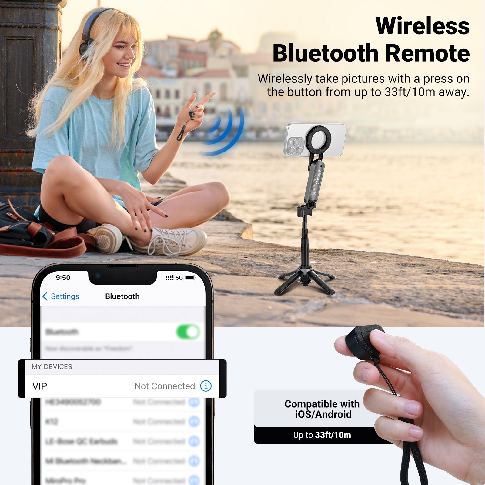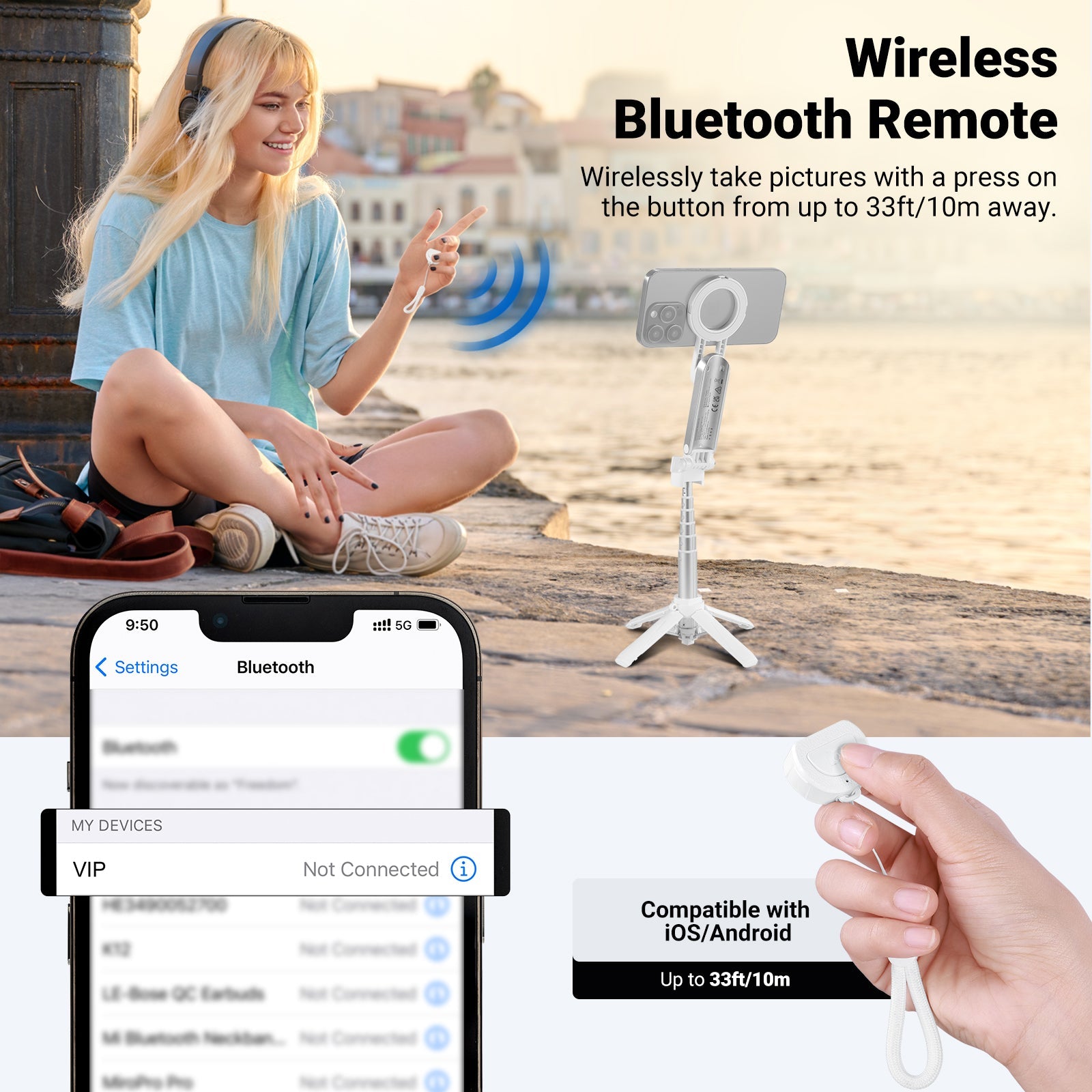 - Supporto versatile per selfie stick : questo attrezzo multifunzionale 3 in 1 combina un selfie stick, un treppiede da viaggio e un supporto per cellulare per vlog su YouTube/TikTok, registrazione video, streaming live, diari di viaggio, fotografia, videoconferenze, chiamate Zoom e altro ancora. Pieghevole fino a 10 cm e leggero (119 g), questo attrezzo può essere facilmente riposto in tasca per le riprese all'aperto.