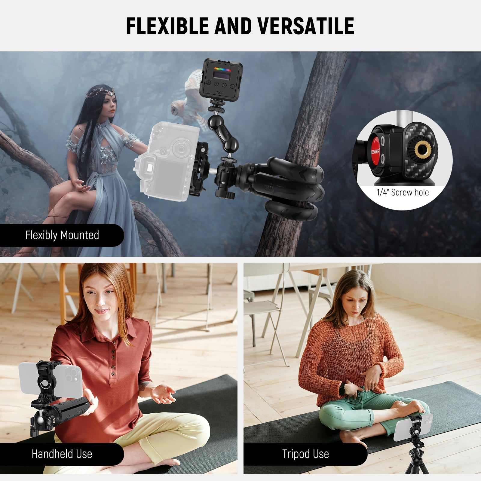 - Treppiede da tavolo stabile superiore - Questo treppiede da tavolo per cellulare, progettato in modo innovativo e meticoloso con silicone di prima qualità per un'eccezionale antiscivolo, assorbimento degli urti e durata. Ogni gamba è composta da sette fili di alluminio intrecciati, che garantiscono un utilizzo flessibile e regolabile per migliaia di pieghe, con cuscinetti in silicone antiscivolo per una comoda maneggevolezza, versatile come selfie stick con impugnatura, ideale per vlog, streaming live, registrazione video, riprese cinematografiche e altro ancora fotografia e videografia
