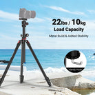 - Metal Build & Added Stability- Made of heavy duty metal alloy, the professional camera tripod supports equipment or photography gear like DSLR cameras, camcorders, telescopes, and sliders up to 22 lbs (10 kg). It includes a handy hook for hanging sandbags (not included), enhancing stability for steady shots in various conditions
