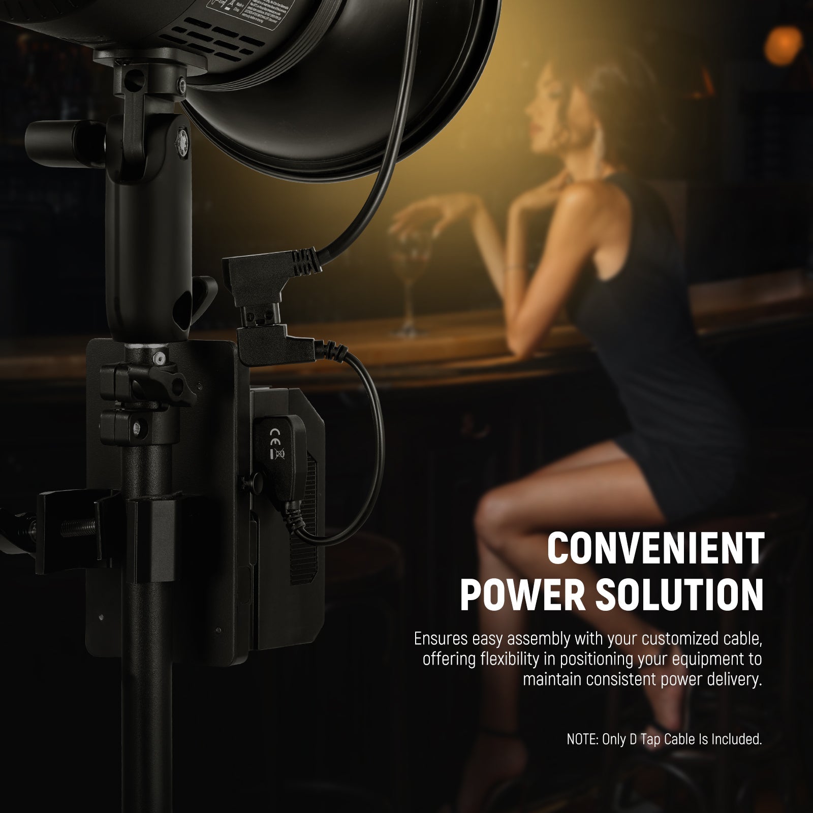 - Connessione sicura : i connettori D-tap a 2 pin assicurano una connessione fluida e sicura, prevenendo disconnessioni accidentali e garantendo un flusso di potenza stabile al dispositivo durante le riprese critiche.