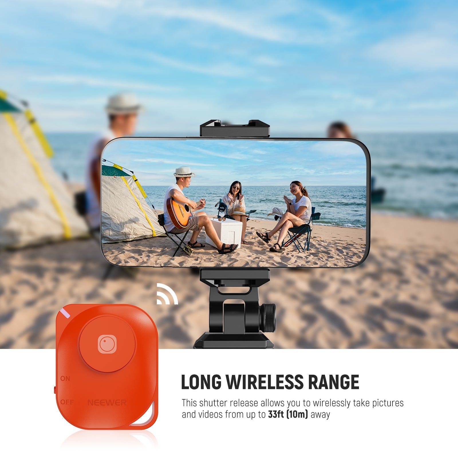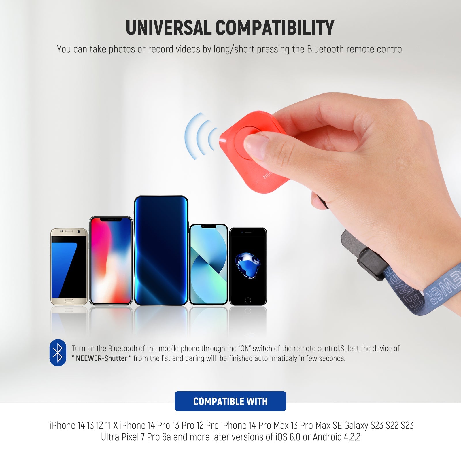 - Lunga portata wireless : questo scatto consente di scattare foto e registrare video in modalità wireless fino a 33 piedi (10 m) di distanza, senza dover più allungare il braccio verso lo schermo del telefono.