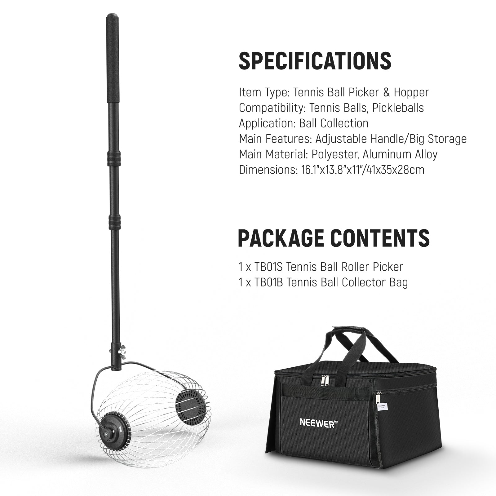 NEEWER TB01S Rullo raccoglitore palline da tennis