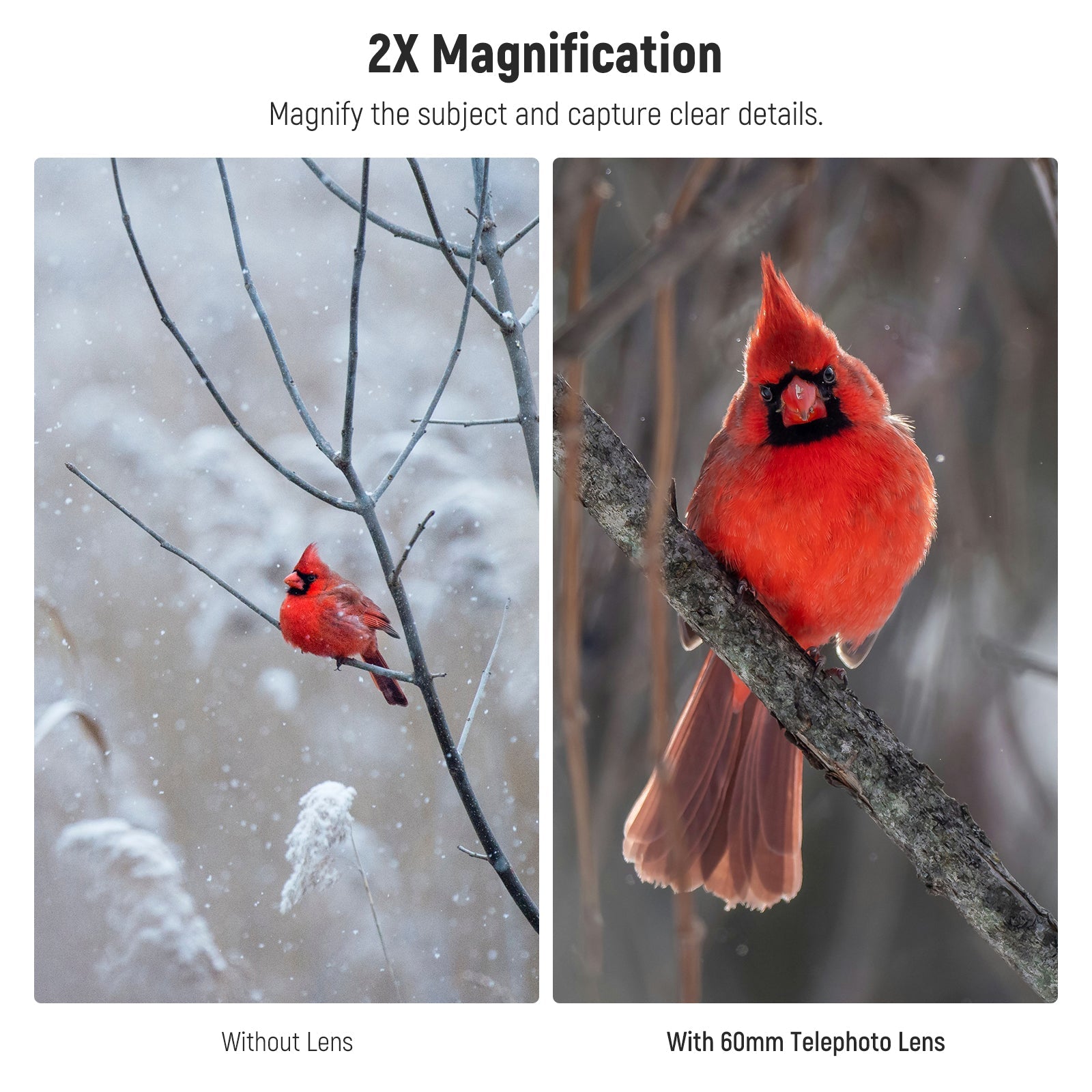 - Teleobiettivo 2X per telefono : l'obiettivo si collega alla fotocamera principale del telefono e raddoppia la lunghezza focale per consentirti di scattare foto nitide, dettagliate e straordinarie senza utilizzare lo zoom digitale, perfetto per la fauna selvatica, i ritratti e i paesaggi