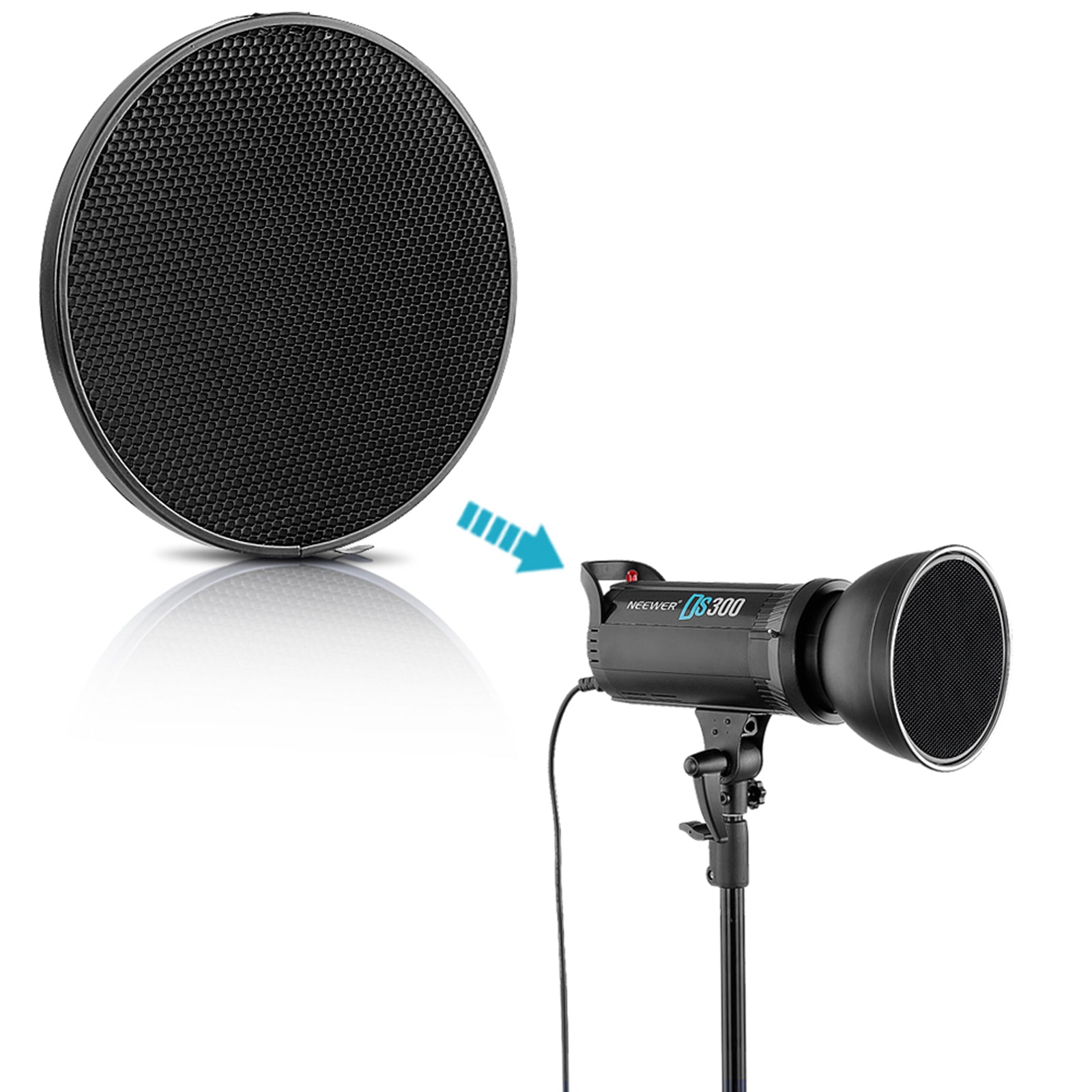 - Riflettore standard da 7" con griglia a nido d'ape da 10,30,50 gradi per luce stroboscopica da studio con supporto Bowens.