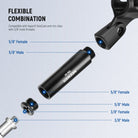 - Slot Design at the Top- The microphone stand buffer tubes and screw adapters are equipped with a threaded mounting interface for easy assembly by hand tightening. The mic stand adapters are also designed with slots at the top, making it easy to disassemble them with a portable coin or wrench (not included), eliminating the frustration of a complicated setup