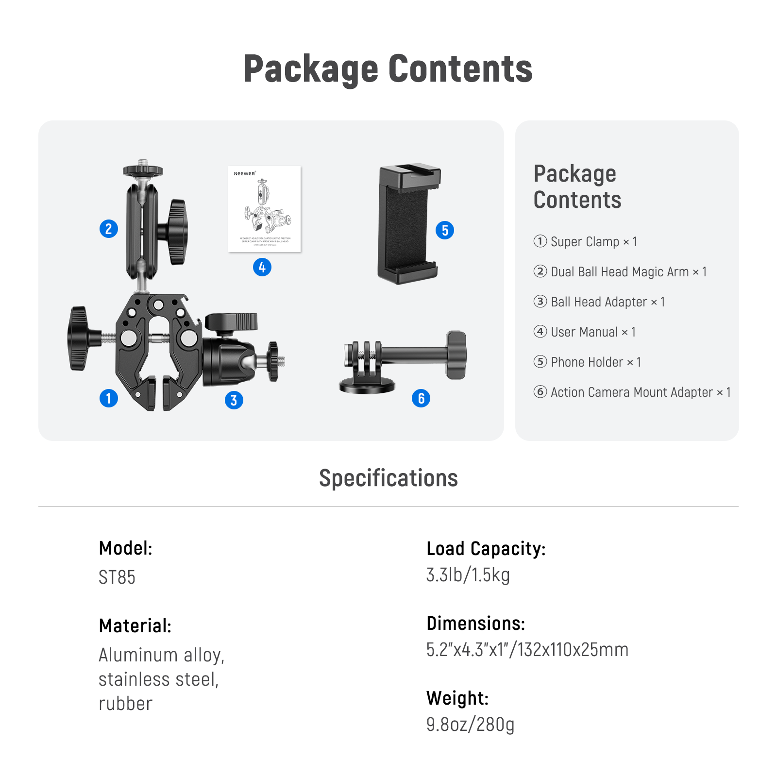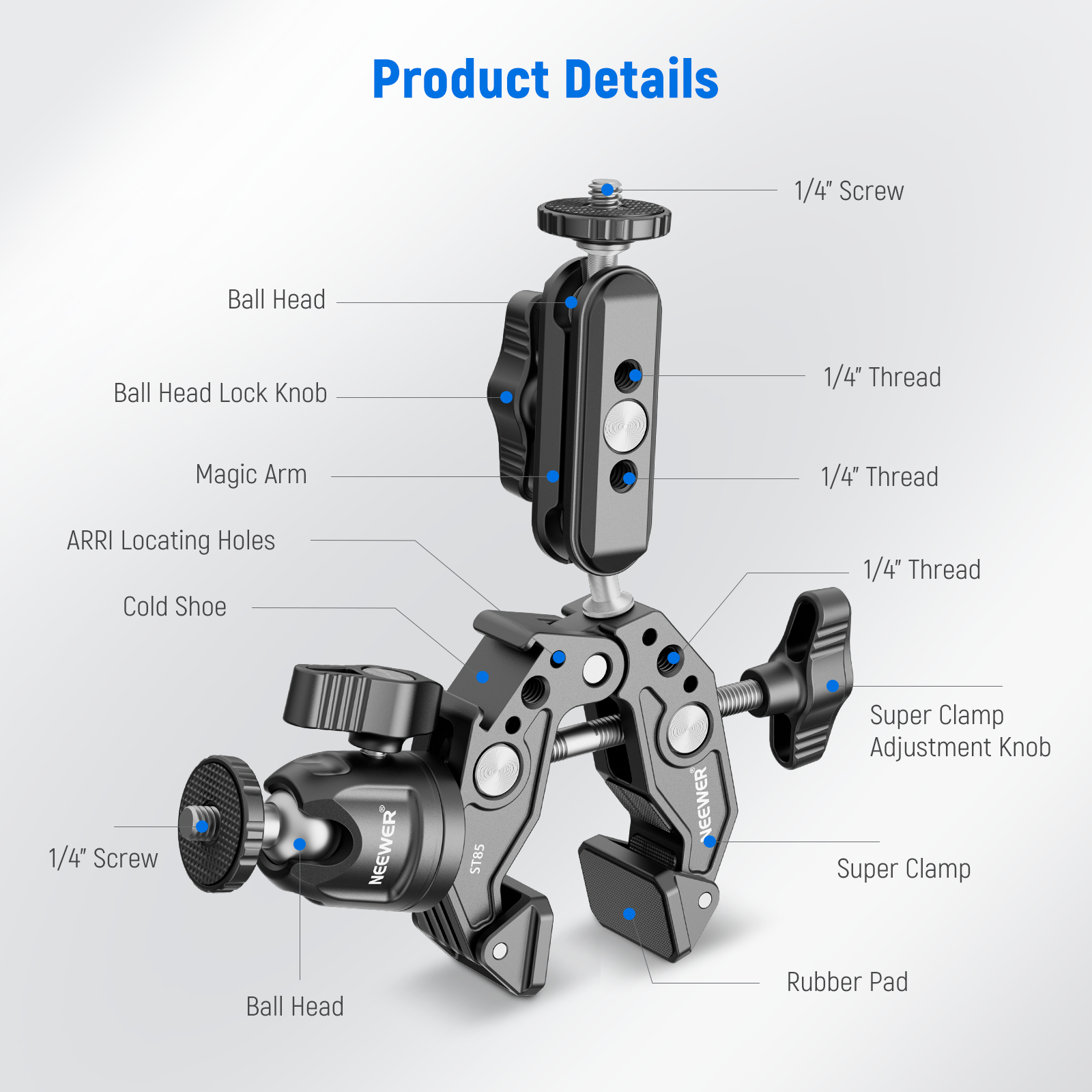 Super Morsetto NEEWER ST85 con Braccio Magico a Doppia Testa a Sfera da 3".