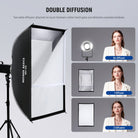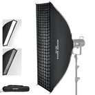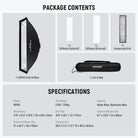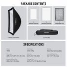 - Strip Softbox Lighting Kit- The 24" x 35" (60 x 90 cm) rectangular softbox features a glossy silver lining that evenly diffuses light, reducing blemishes and shadows while maintaining a neutral color rendering index (CRI) and color temperature, with two diffusers and a honeycomb grid for precise control. Weighing just 2.2 lbs (1.01 kg), it folds flat and fits in the drawstring bag with grid and diffusers for portrait photo, product beauty studio photoshoot, wedding video, photography on the go
