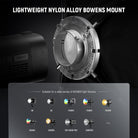 - Standard Bowens Mount- Seamlessly compatible with Godox SL60w compatible with Aputure 120D 60D compatible with Amaran 100x 150c 600d NEEWER Q4 Vision 4 CB200B RGB CB60 MS60B MS60C MS150B S101-300WPRO/400W Pro and other Bowens mount studio strobe lights and continuous LED video lights. Ideal equipment as content creator essential photography videography accessories and influencer must have camera photo & film lighting gear