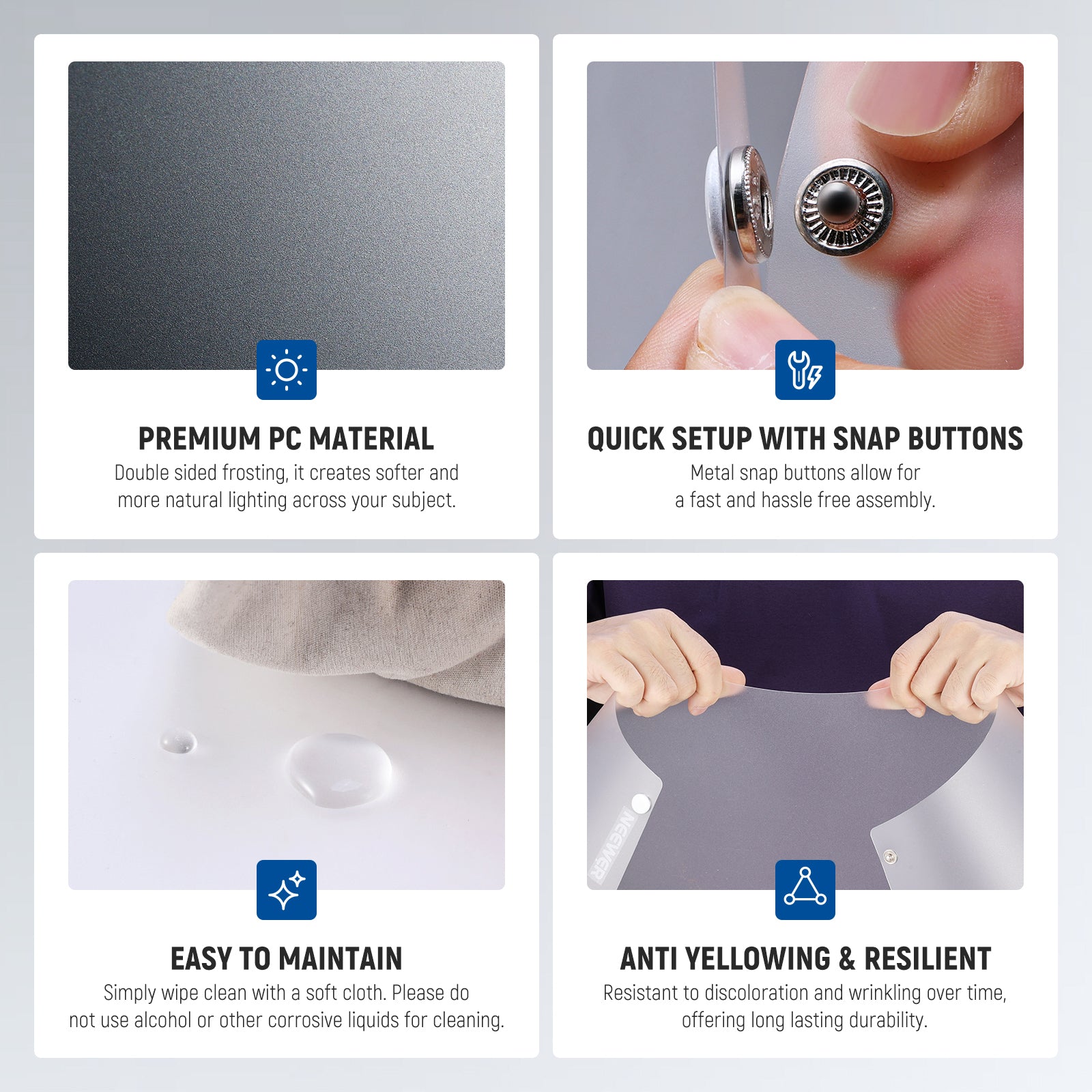 - Alternative ai Photo Box - Realizzato in policarbonato spesso 0,5 mm con elevata trasmittanza e resistenza al calore, questo kit softbox conico di NEEWER sostituisce i tradizionali photo box per una fotografia di prodotti, servizi fotografici, riprese video e riprese pulite e professionali. Un versatile mini set di diffusori softbox, compatibile con attrezzature come luci LED, flash da studio, flash esterni, speedlight, speedlite e lampade da scrivania.