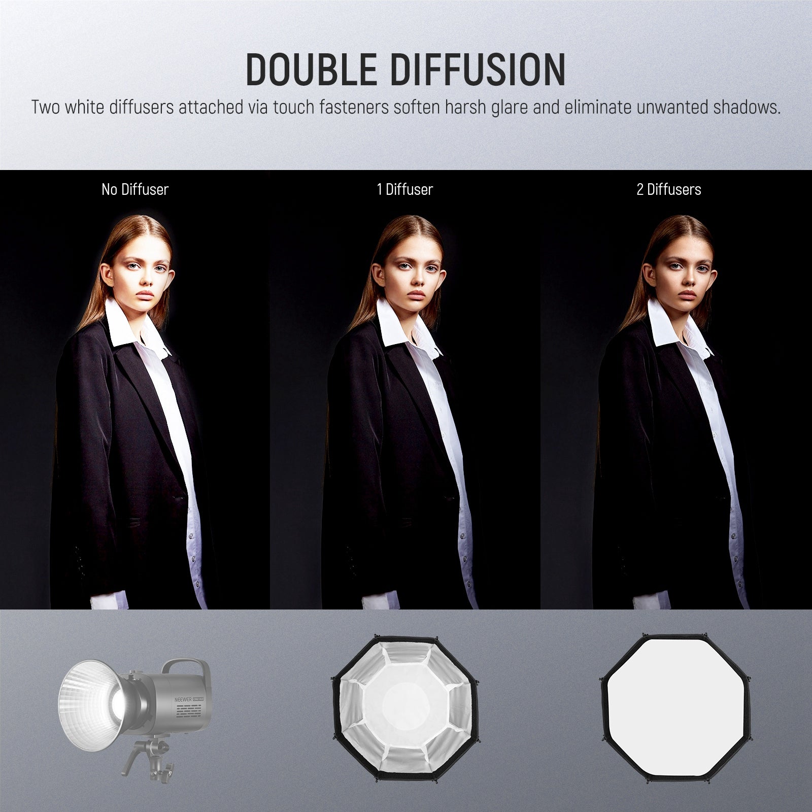 - Softbox ottagonale Premium - Esalta i tuoi ritratti, matrimoni, fotografia di moda, registrazione video, streaming live e interviste con questo softbox ottagonale essenziale. Gli interni argentati intensificano la sorgente luminosa mantenendo i colori reali. Include diffusori e una griglia per ammorbidire i riflessi ed eliminare le ombre. Leggero con una struttura in lega di nylon e una borsa per il trasporto per la portabilità all'aperto