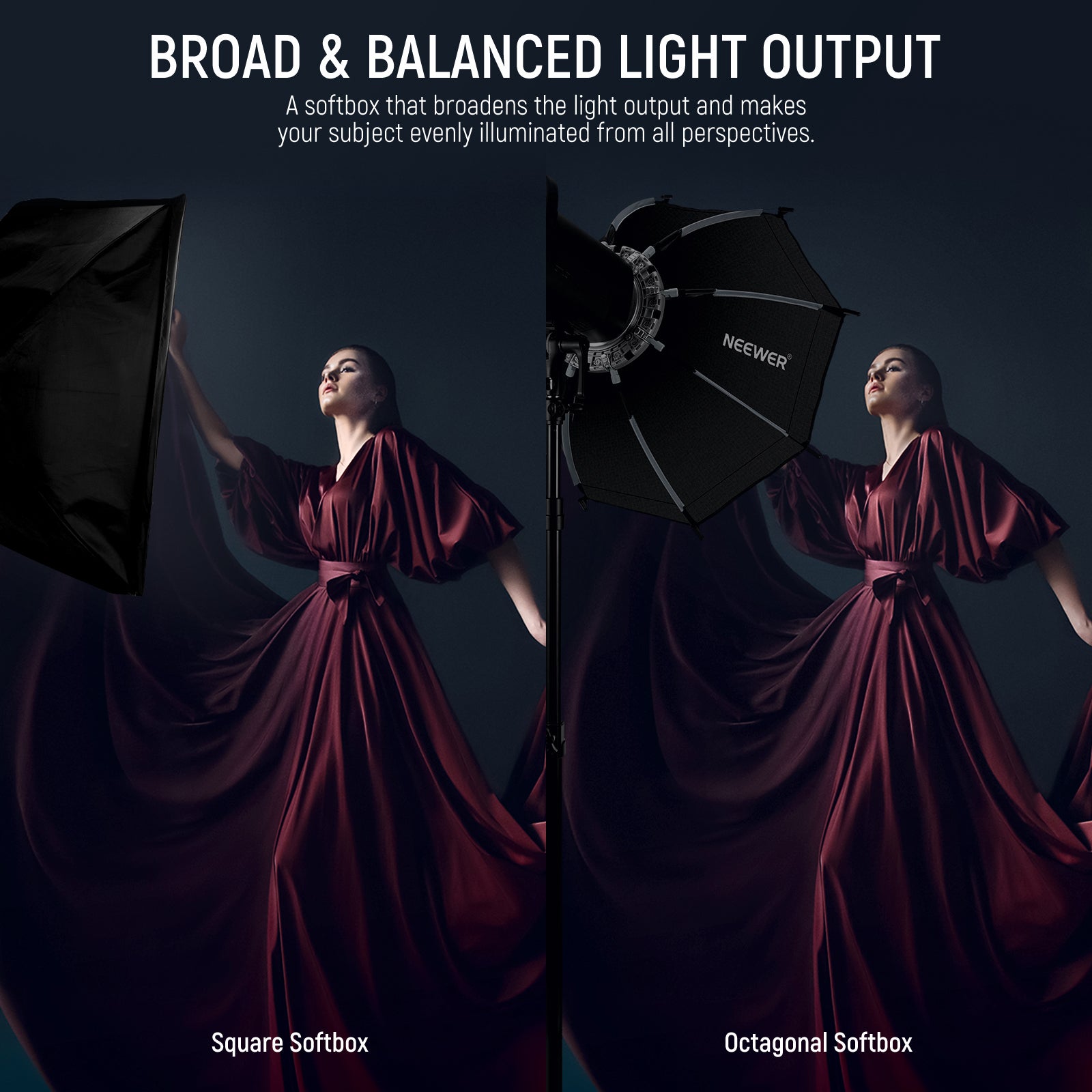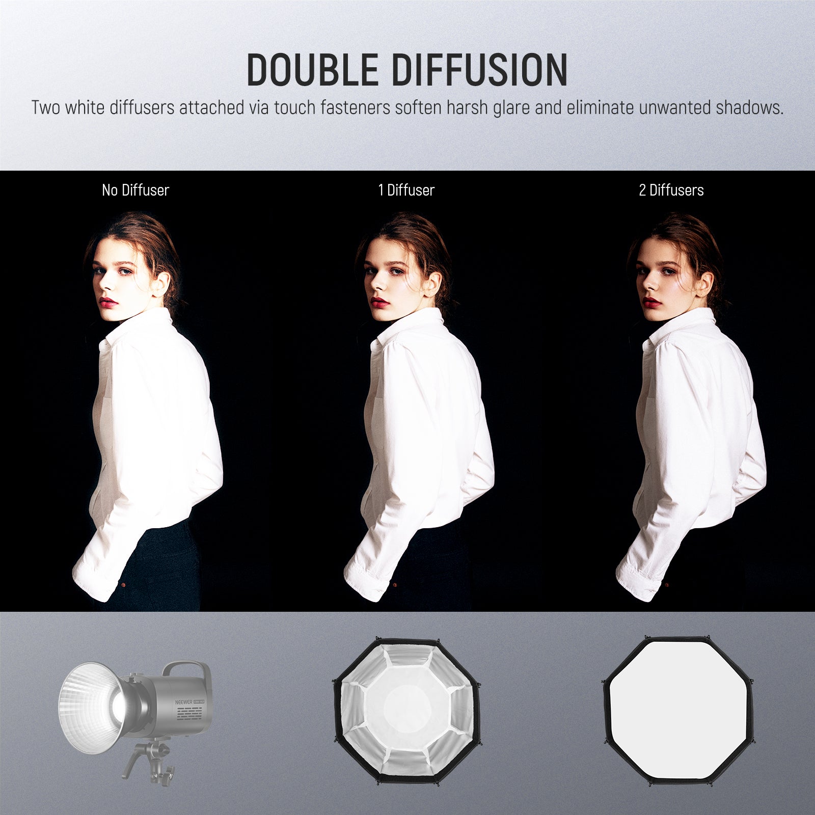 - Quick Release & Fold - Grazie alla sua struttura integrata, il softbox consente un'apertura e una chiusura istantanee in pochi secondi. Sperimenta un controllo dell'illuminazione senza soluzione di continuità a portata di mano, risparmiando tempo e fatica. È un'alternativa più comoda ed efficiente alle versioni tradizionali