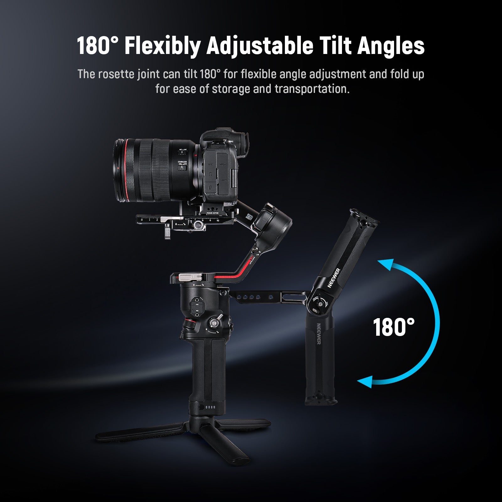 - Angoli di inclinazione regolabili in modo flessibile a 180° - Il giunto a rosetta può inclinarsi di 180° per una regolazione flessibile dell'angolo e ripiegarsi per facilitare lo stoccaggio e il trasporto. Con una struttura resistente, la maniglia dell'imbracatura può supportare un carico fino a 13,2 libbre/6 kg