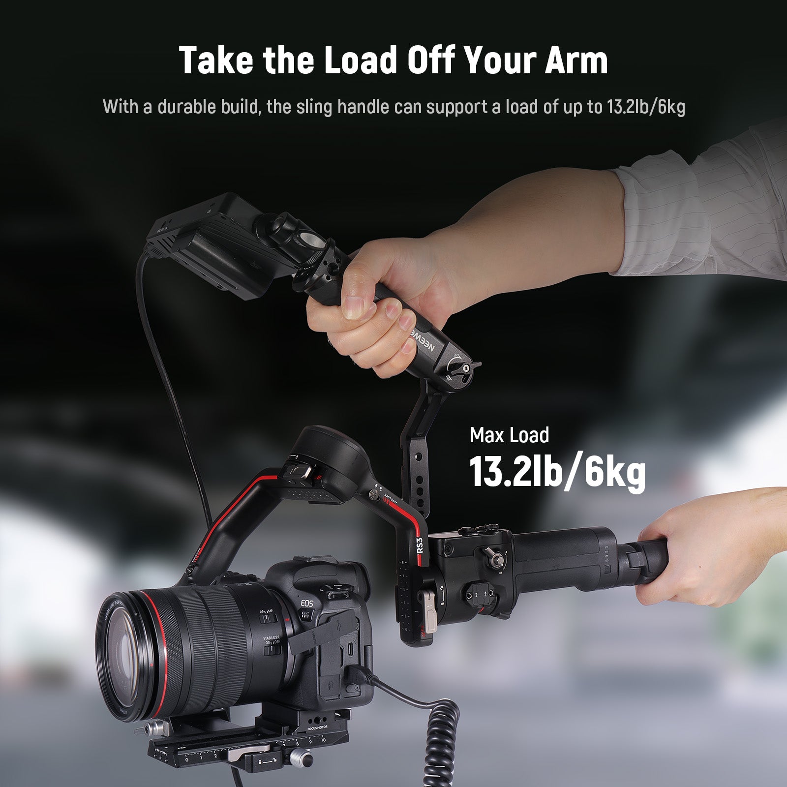 - Impugnatura ergonomica e antiscivolo in gomma - L'impugnatura della tracolla è rivestita in gomma morbida e antiscivolo per una presa comoda e sicura. Consente di tenere il gimbal in modo stabile per scatti ad angolazione bassa e aiuta a ridurre lo stress muscolare del braccio durante una lunga sessione di tiro