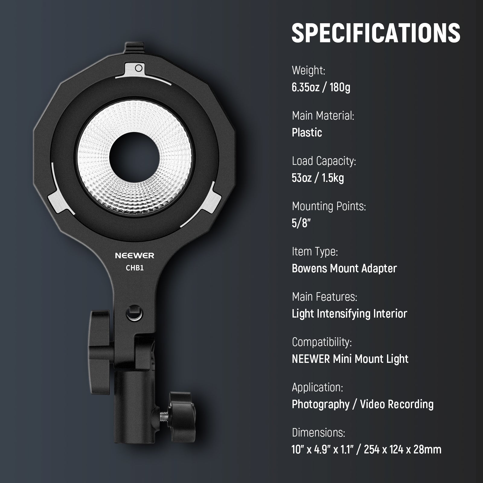 Supporto adattatore per montaggio Bowens CHB1 di NEEWER per luce video portatile HS60B/HB60S
