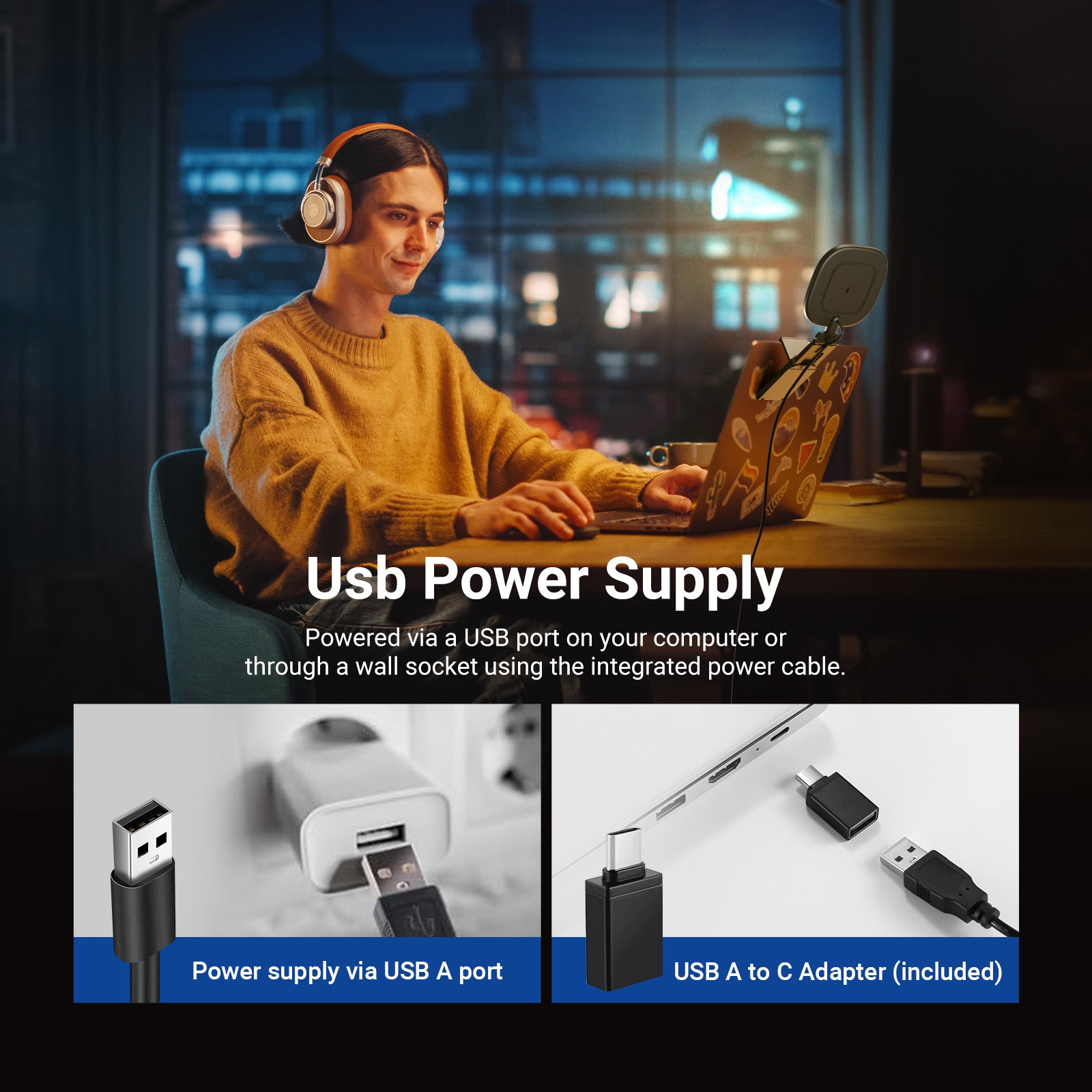 - Versatile Full Screen Light- Mount the small LED panel influencer light with stand directly onto a monitor, curved monitor, laptop, computer screen or place it on the desktop as desk setup accessories. Attach to a webcam via the 1/4" threaded hole. Portable lighting for TikTok YouTube recording, podcast, video conferencing, Zoom meeting/call, gaming streaming, online teaching, selfie, makeup artist filming, reading book, etc. Power it via a USB port with the 6.3'/193cm integrated power cable