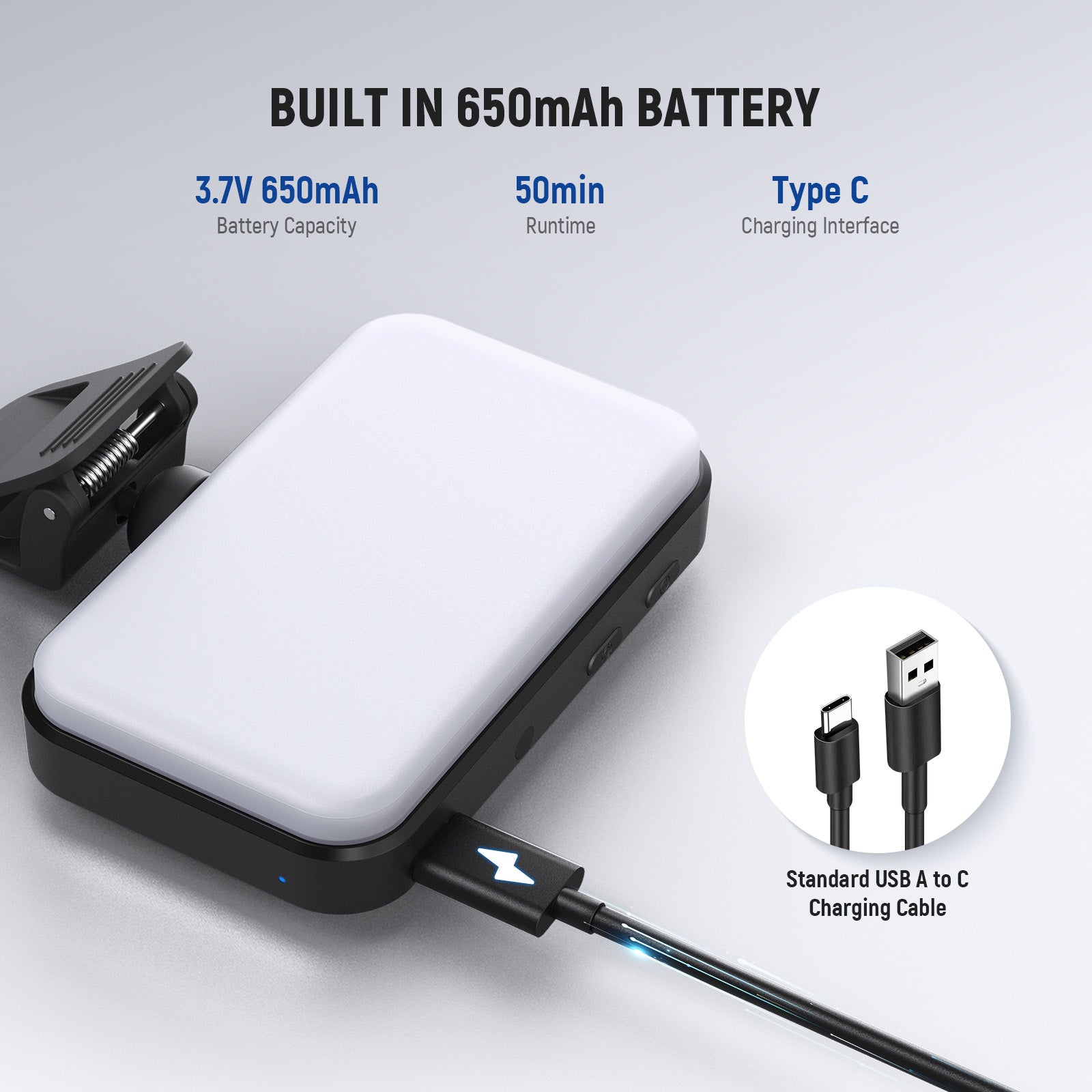 - Rechargeable LED Video Fill Light- The built in 650mAh rechargeable battery powers the phone video light for up to 50min on a full charge. Easily recharged using a 5V/1A power source (wall chargers, portable chargers, or computers) using the USB Type charging cable, this phone fill light is an ideal choice for effortless on the go content creation as portable creator essential selfie accessories, streamer and influencer must have photography gear