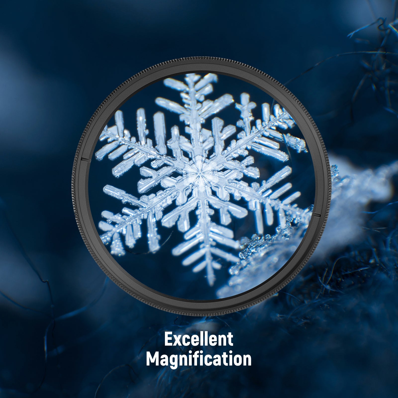 - Filtri per primo piano per la fotografia macro - I filtri per primo piano macro ingrandiscono il soggetto ripreso, come fiori, insetti e monete, di +1, +2, +4 o +10 volte per catturare più dettagli, adatti per la fotografia macro. È a doppia filettatura per essere utilizzato insieme ad altri filtri, come un polarizzatore. Diversi pezzi di filtri ravvicinati possono anche essere impilati in combinazioni