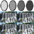 - Set di filtri a densità neutra : questo kit include quattro filtri a densità neutra (ND2/ND4/ND8/ND16), una penna per la pulizia delle lenti, un panno per la pulizia e un sacchetto per filtri. Per la fotografia a lunga esposizione e una profondità di campo ridotta, questi filtri possono rallentare la velocità dell'otturatore, creare un effetto movimento drammatico ed evitare la sovraesposizione quando si utilizza un'apertura ampia