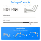 Testine di presa in metallo: le testine di presa possono bloccare saldamente il braccio di estensione e consentono una regolazione flessibile dell'angolazione. Quattro fori in ciascuna testina di presa consentono di fissare aste, bracci e aste di ombrelli di diversi diametri. -