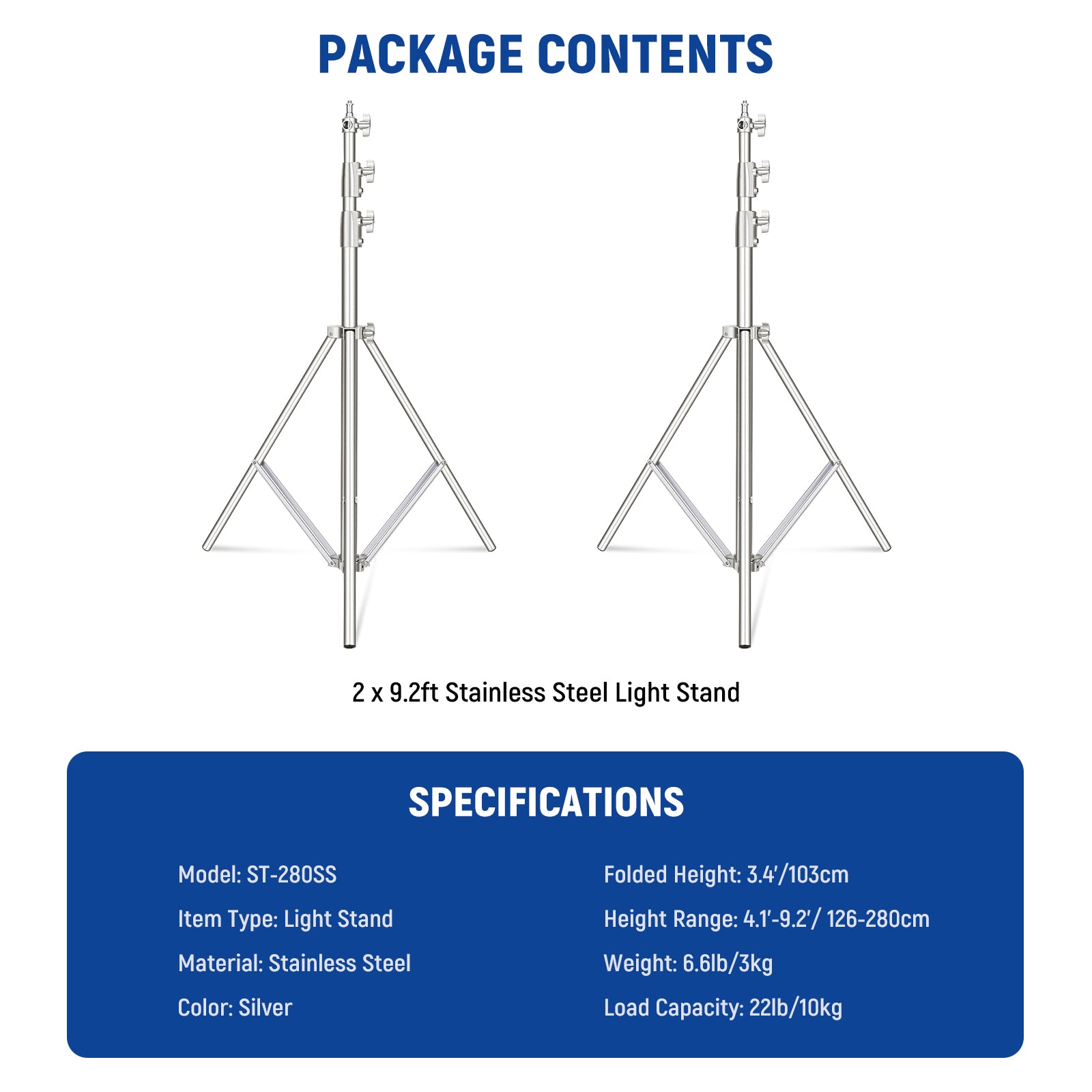 NEEWER ST-200SS 2 confezioni da 200 cm in acciaio inossidabile per supporto fotografico