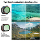 - Riproduzione di colori vividi e protezione dell'obiettivo - Migliora la qualità di ripresa con l'eccellente resa cromatica realizzata dal filtro CPL incluso. Aiuta a ridurre l'abbagliamento e i riflessi spiacevoli provenienti da superfici come acqua, vetro e altri oggetti non metallici. Il filtro UV offre inoltre toni più vividi durante le riprese e protegge il tuo prezioso obiettivo da danni come graffi, polvere e dannosi raggi UV.