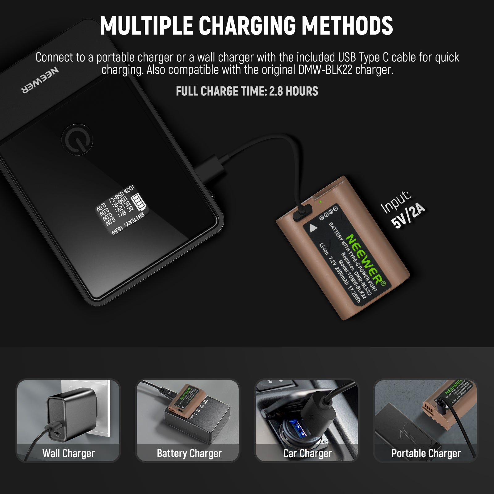 Batteria sostitutiva Panasonic NEEWER DMW-BLK22 da 2400 mAh