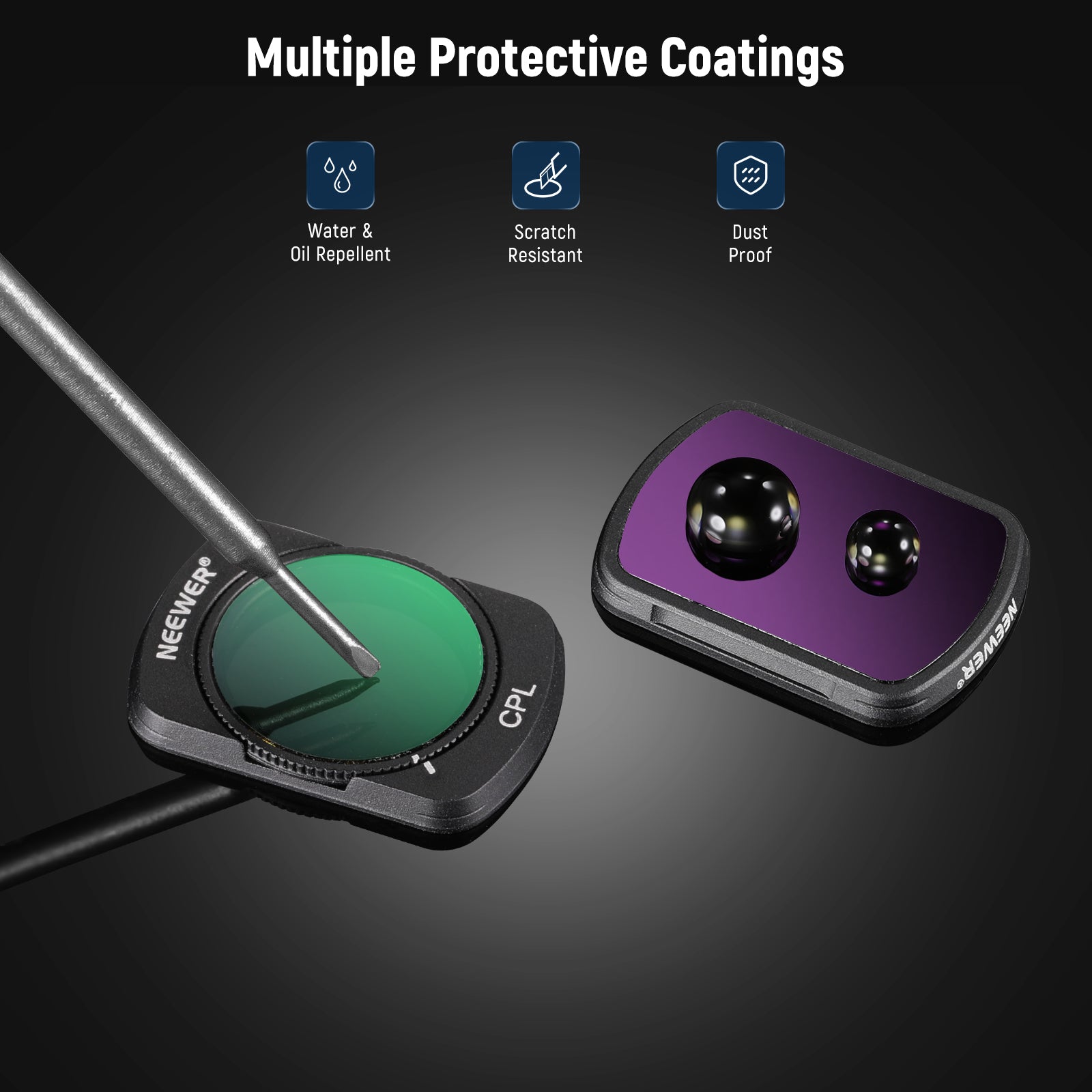 - Vetro ottico HD multistrato : con 30 strati di rivestimenti multifunzionali su entrambi i lati del vetro ottico HD, questi filtri per action camera portatili sono idrorepellenti, resistenti ai graffi e all'olio, garantendo una qualità ottica di lunga durata in ambienti difficili.
