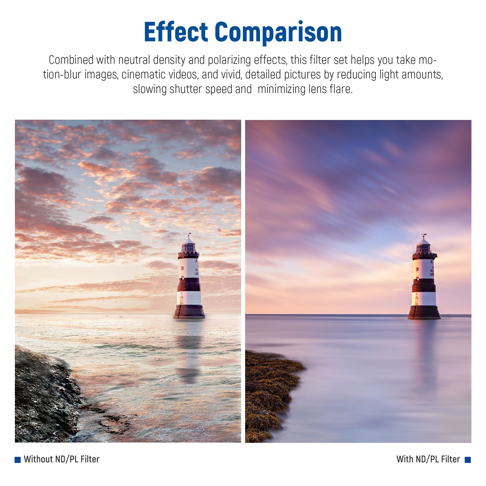 - OTTIMA FUNZIONE : i filtri per lenti ND riducono la quantità di luce che raggiunge la pellicola senza alterare il colore; ND8 riduce l'esposizione di 3 stop; ND16 riduce l'esposizione di 4 stop; ND32 riduce l'esposizione di 5 stop; ND64 riduce l'esposizione di 6 stop; I filtri ND/PL possono rimuovere i riflessi indesiderati durante l'acquisizione di video cinematografici