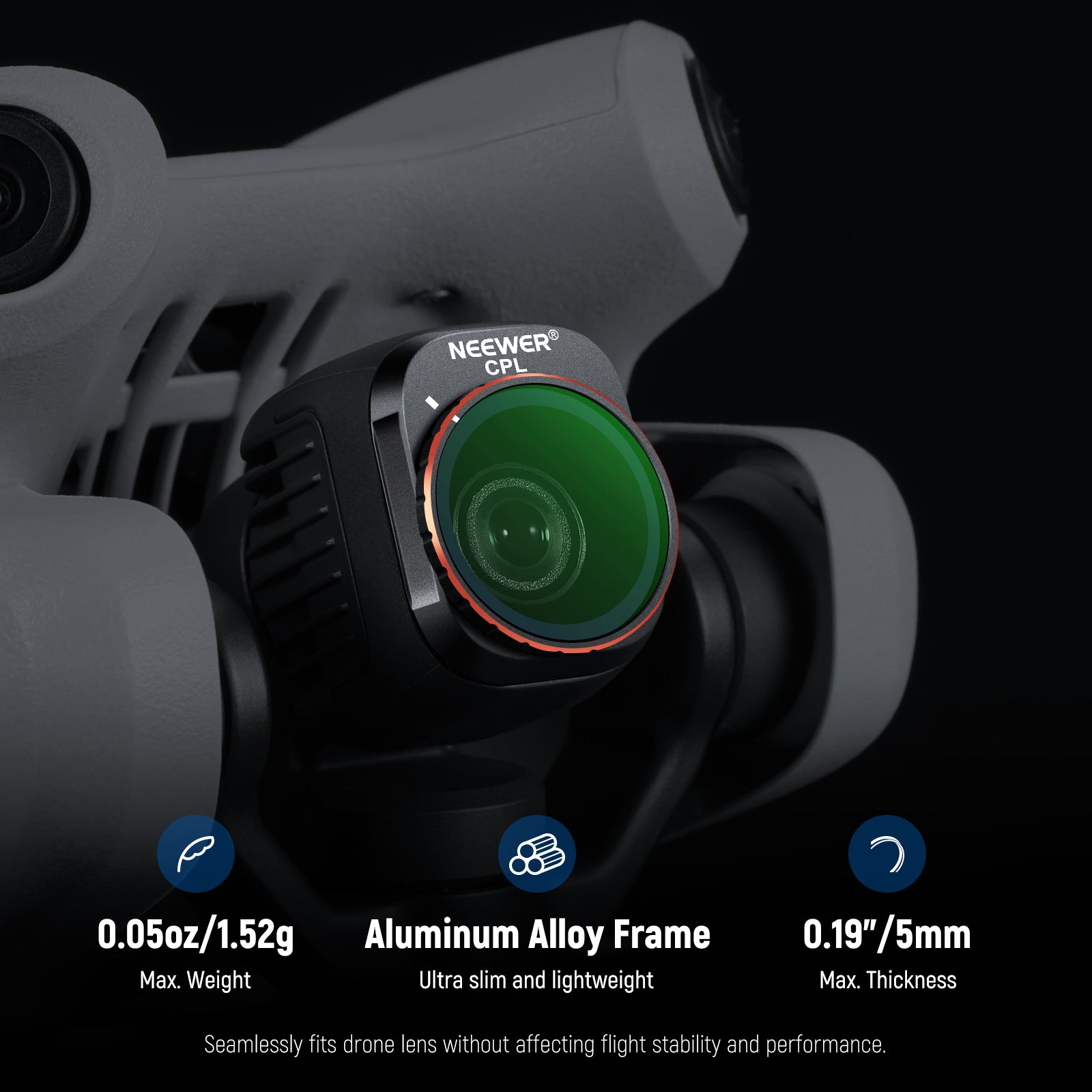 - Dedicato all'obiettivo del drone Mini 4 Pro - Lavorato con precisione tramite CNC per essere compatibile esclusivamente con il DJI Mini 4 Pro. Questo kit di filtri ND e CPL è una vera svolta per tutti gli appassionati di droni che desiderano ottimizzare la velocità di otturazione, ridurre i flare, migliorare i colori e ottenere un'esposizione perfetta in diverse condizioni meteorologiche. Realizzati in lega di alluminio aeronautico, i filtri leggeri da 0,11 oz/3,2 g non interferiscono con la calibrazione e il bilanciamento del drone.