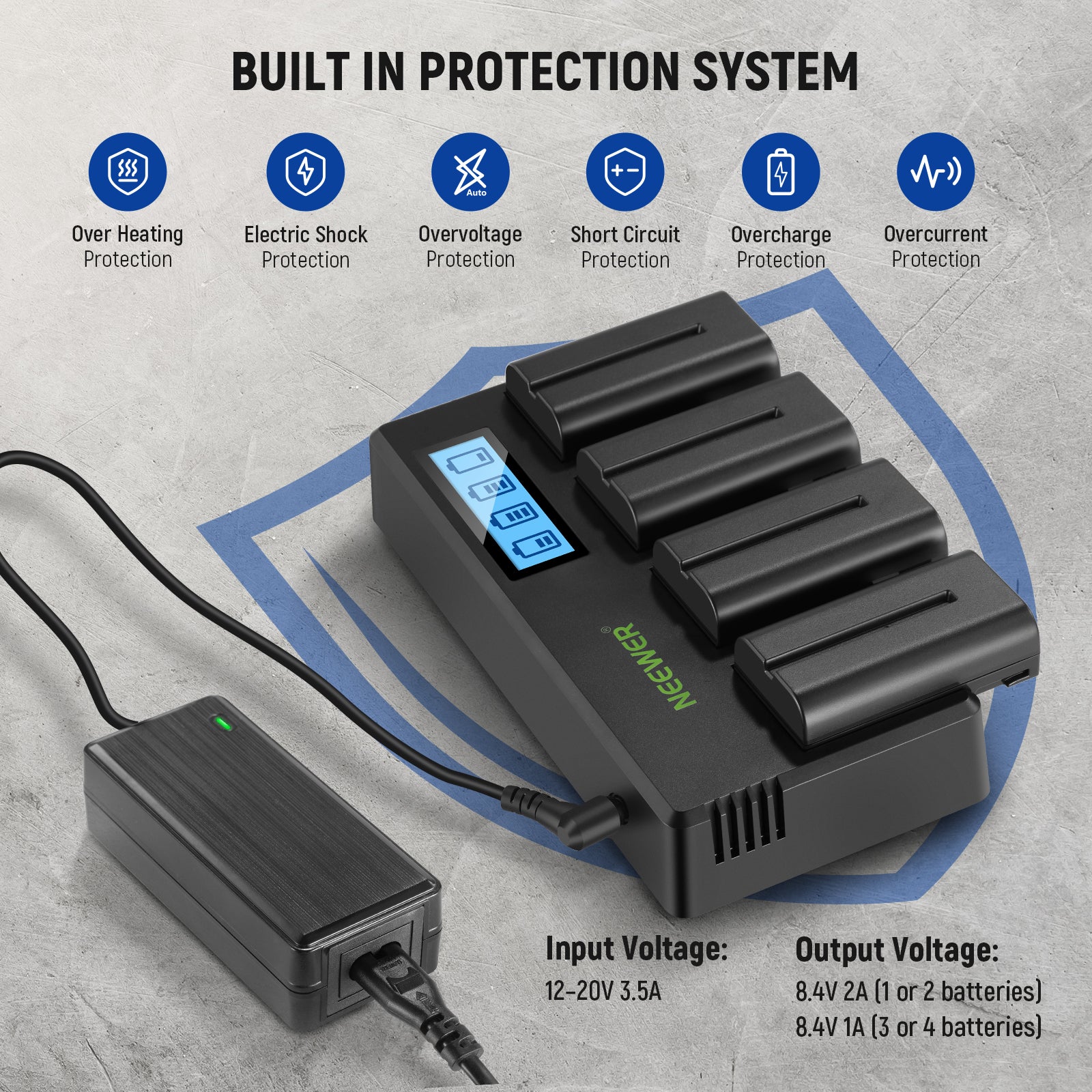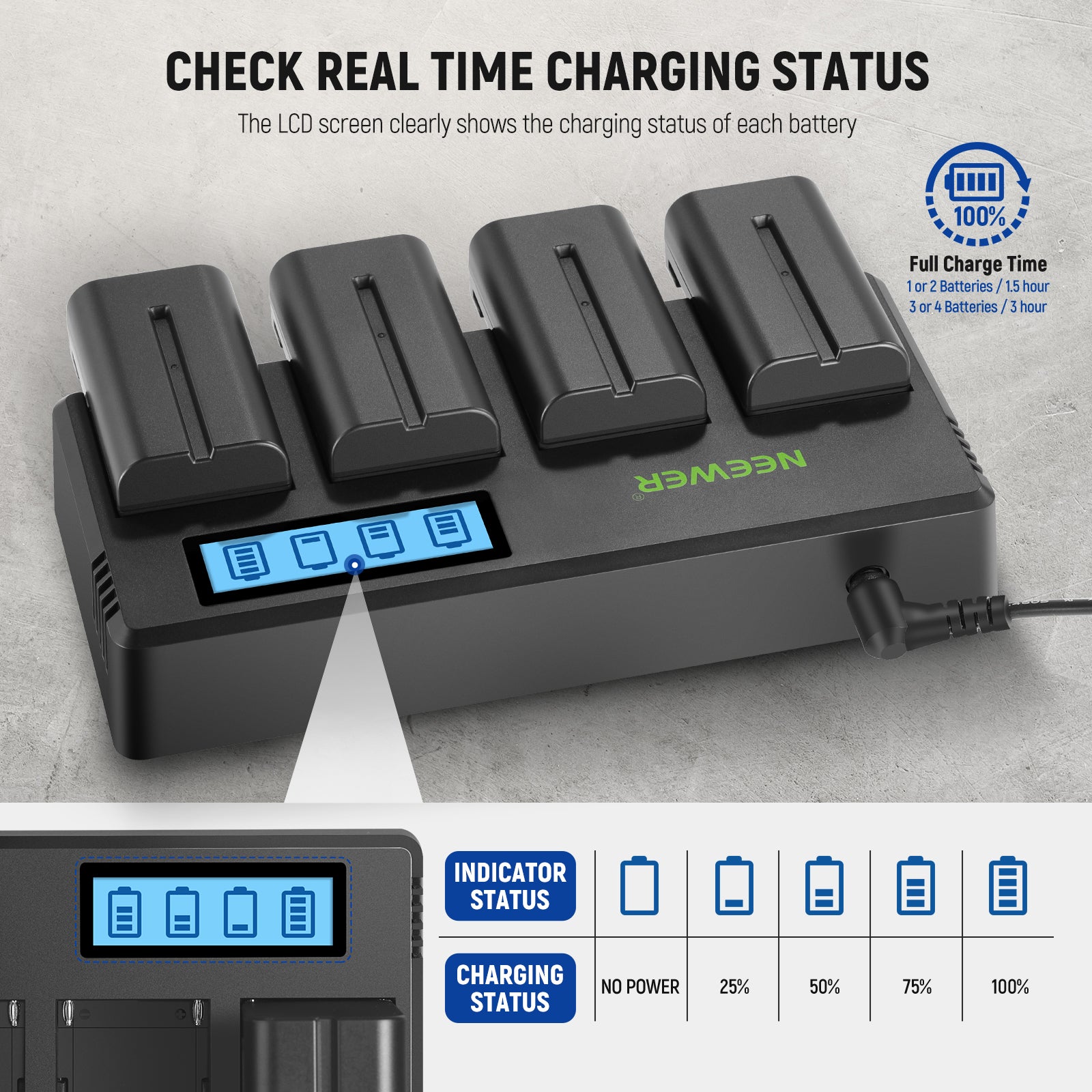 - Ampia compatibilità : le batterie NP-F550 alimentano qualsiasi dispositivo con una piastra batteria NP-F, inclusi videocamere e videocamere, monitor da campo Neewer, luci ad anello e luci video a LED. Il caricabatterie è compatibile con batterie NP-F550, 570, 750, 770, 960, 970, 975 e altre batterie NP-F