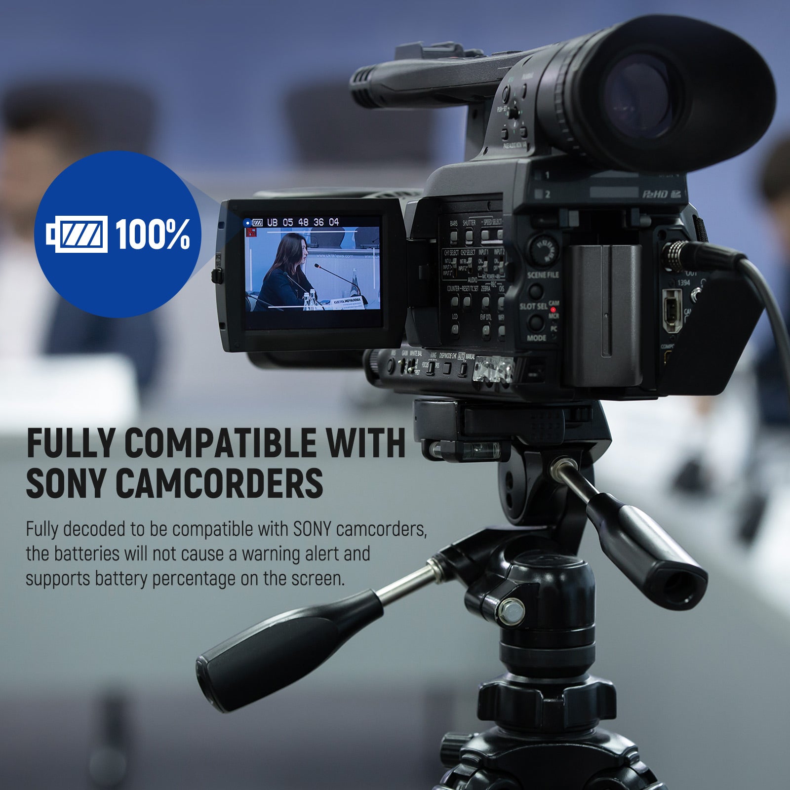 - Elevata potenza della batteria : quattro batterie NP-F550 da 2600 mAh forniscono energia sufficiente per la videocamera, il monitor da campo, la luce anulare e la luce video LED durante le riprese all'aperto