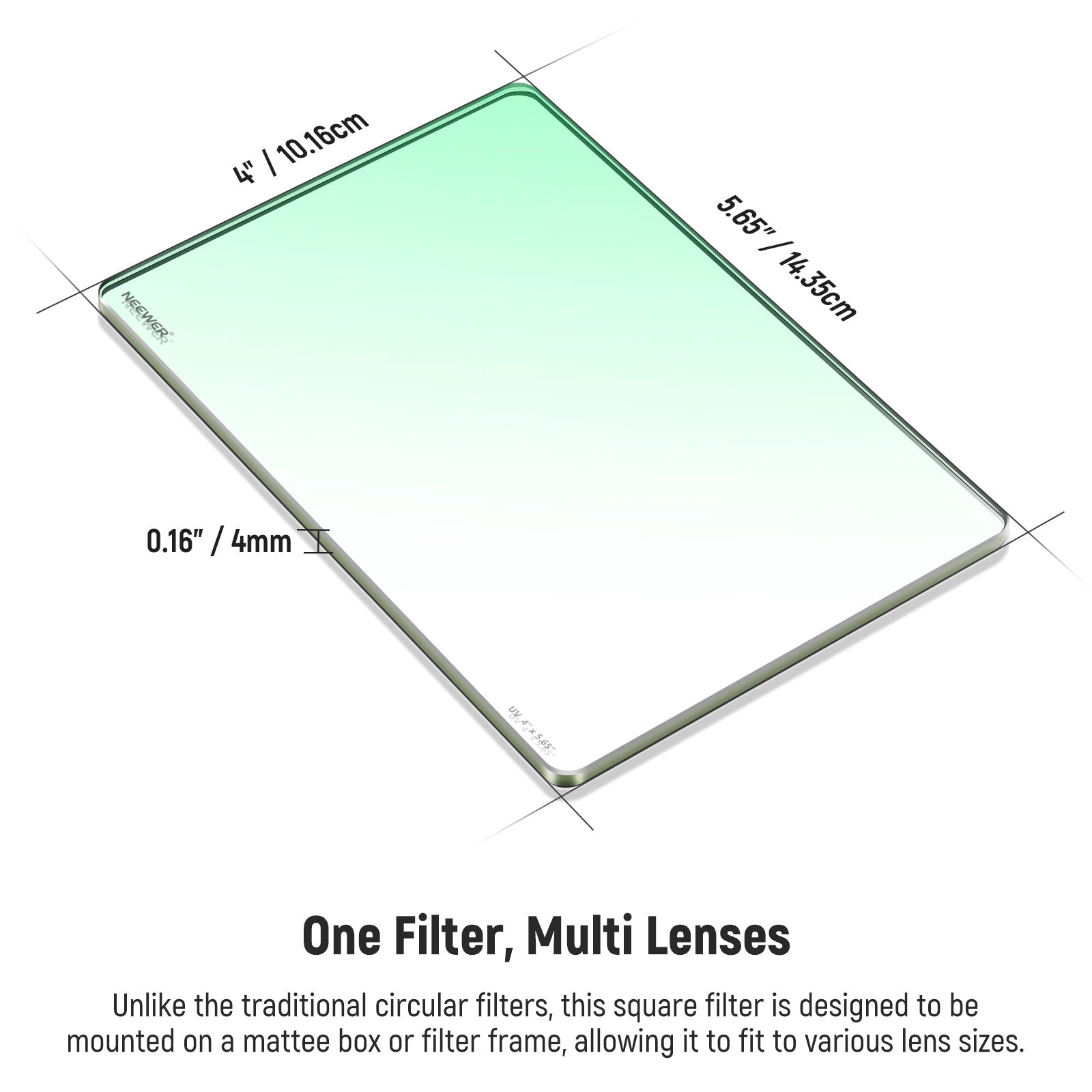 - Filtro UV quadrato per Matte Box - Compatibile con Tilta SmallRig Matte Box, Mini Matte Box e telaio del filtro. Utilizza il filtro UV quadrato NEEWER per bloccare i raggi ultravioletti ed eliminare la dominante bluastra nelle immagini