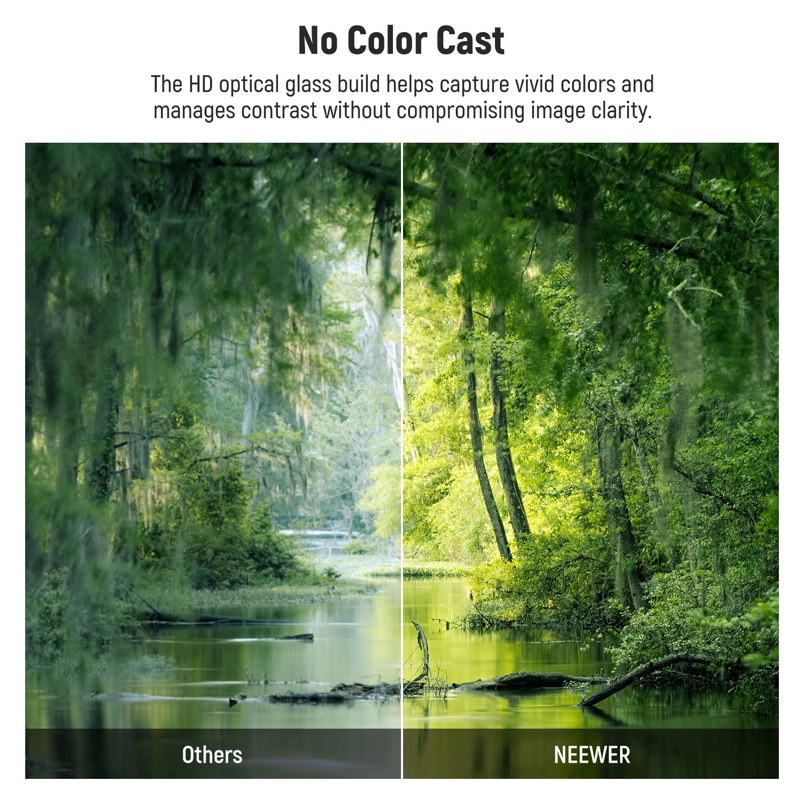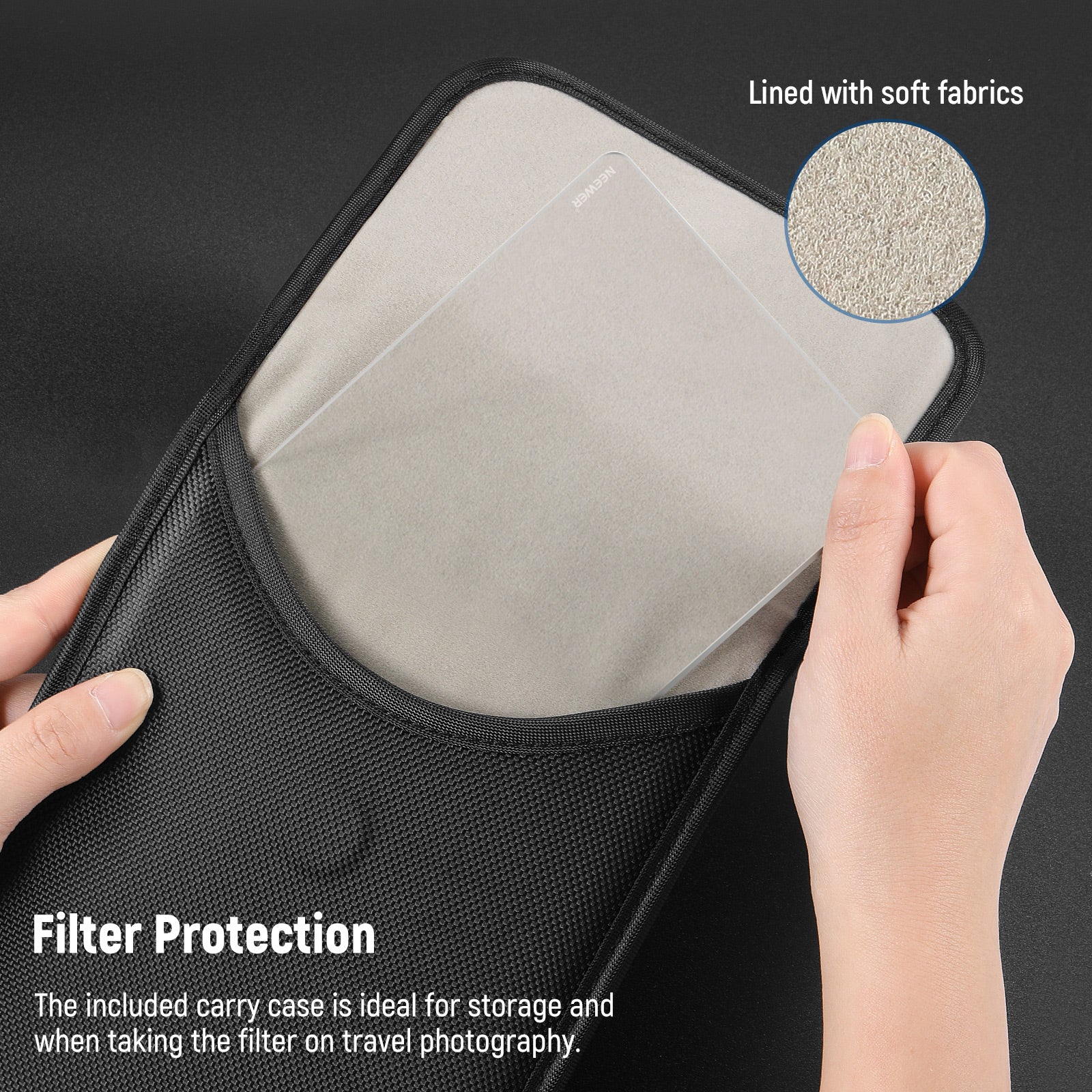 - Ampia compatibilità : a differenza del filtro circolare tradizionale per lenti di dimensioni particolari, questo filtro quadrato non è avvitato direttamente sull'obiettivo, quindi può essere utilizzato per obiettivi di varie lunghezze focali se montato su una scatola opaca o su un telaio del filtro