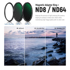 - Set di filtri per lenti magnetiche - Progettato con un telaio in lega di alluminio antiscivolo CNC con magnetismo, questo set di filtri consente lo scambio di 1 secondo tra diversi filtri, evitando angoli bui e bui su obiettivi grandangolari e teleobiettivi. Basta collegare l'anello adattatore magnetico incluso all'obiettivo della fotocamera da 82 mm, quindi selezionare un filtro dal kit e collegarlo all'anello adattatore