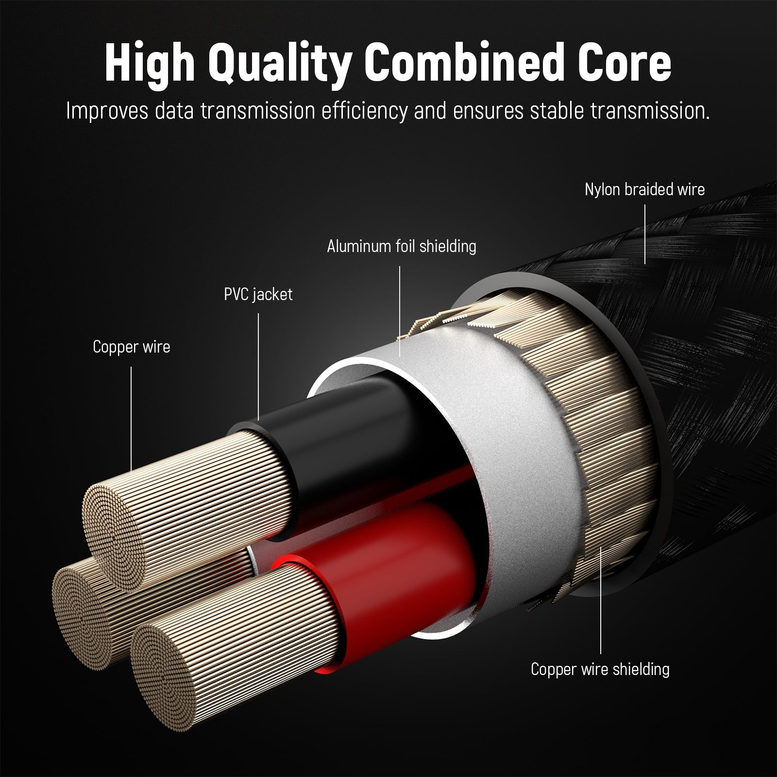 - Materiali di prima qualità - Realizzato in lega di alluminio di prima qualità, il cavo da 72,4"/184 cm è dotato di protezione anti-interferenza multistrato, mentre lo strato esterno è realizzato con tecnologia in nylon intrecciato per mantenere una maggiore durata.