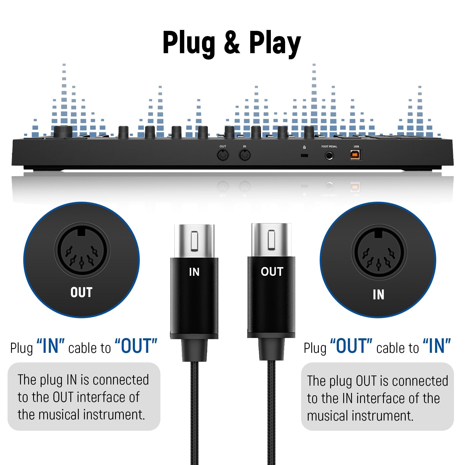 - Trasmissione veloce e stabile: ingresso e uscita MIDI a latenza ultra bassa. Dotato di una forte conduttività elettrica, il cavo MIDI consente una trasmissione fluida e stabile e fornisce protezione dalle interferenze elettromagnetiche.