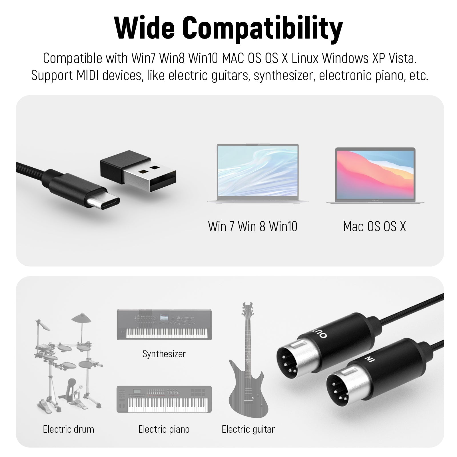 - Nessun driver richiesto: questo cavo di tipo C adotta un chip premium per garantire una connessione stabile tra i dispositivi. È facile da configurare, basta collegarlo e riprodurlo senza dover installare driver. Adatto alla maggior parte delle APP di registrazione audio, compatibile con Windows XP Vista 7 8 10 Mac OS X Android 6.0+ iOS e la maggior parte degli strumenti musicali.