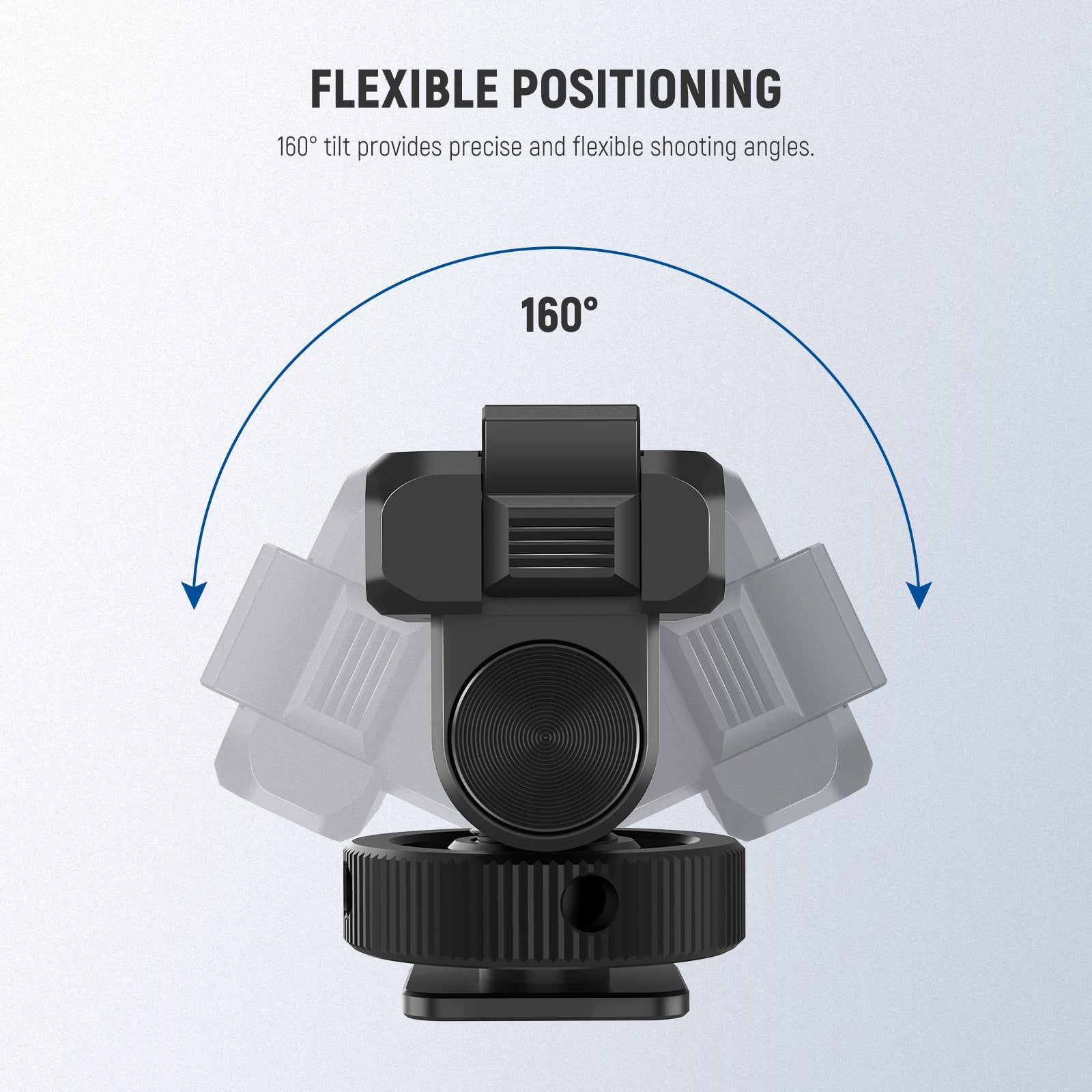 - Slitta fredda e foro filettato da 1/4" - Una slitta fredda si fissa facilmente alla fotocamera o alla gabbia della fotocamera tramite la rotella, e una filettatura da 1/4" è adatta a vari treppiedi e supporti per fotocamere