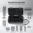 - Custodia rigida impermeabile - Questa robusta custodia rigida presenta un robusto rivestimento esterno in ABS che resiste a urti, polvere e acqua. Con un grado di protezione IP67, impermeabile e antipolvere, offre una protezione completa per il tuo Osmo Pocket 3 Creator Combo.