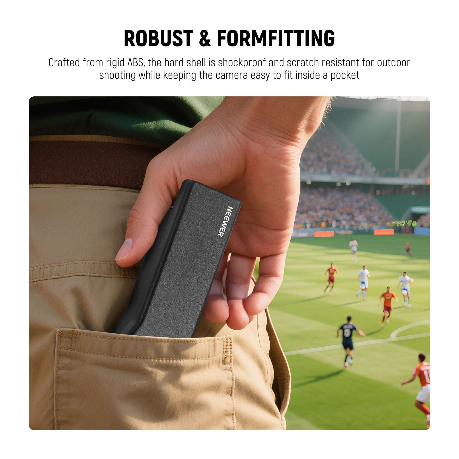 • Robusto e aderente : realizzato in ABS rigido, il guscio rigido è antiurto e resistente ai graffi per le riprese all'aperto, mantenendo la fotocamera Pocket 3 compatta e facile da inserire in una borsa per il trasporto.