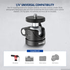 - Molteplici opzioni di montaggio : la filettatura inferiore da 1/4" consente a questa testa a sfera di montare facilmente treppiedi da tavolo, monopiedi, selfie stick, bracci magici, impugnature e cursori per una creazione di contenuti versatile.
