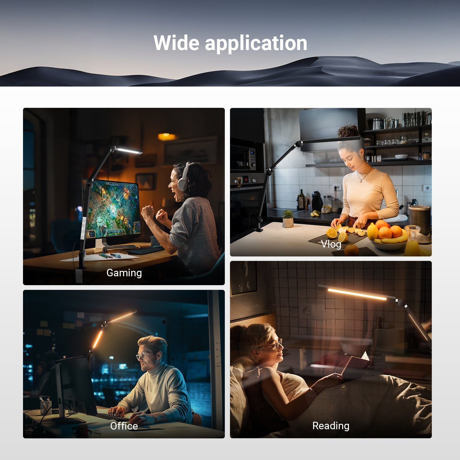 - Dual Light Bars with 42.5" Length- As essential and cool lighting accessories, NEEWER desktop LED lamp for home office deliver broad, even, and bright overhead illumination up to 1150lux/0.5m. Takes up small desk spaces over computer monitor laptop for video calls, architects designing, work from home, study at college dorm room, workbench drafting, etc.