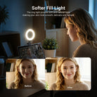 - Molteplici opzioni di illuminazione : basta premere il pulsante di commutazione della modalità per passare dalle modalità di illuminazione calda, calda mista, mista, fredda mista e bianca fredda. La luce ad anello è inoltre dotata di una funzione di oscuramento a 10 livelli che può regolare la luminosità senza soluzione di continuità dal 10% al 100%, migliorando il controllo della luce per diverse esigenze di ripresa.