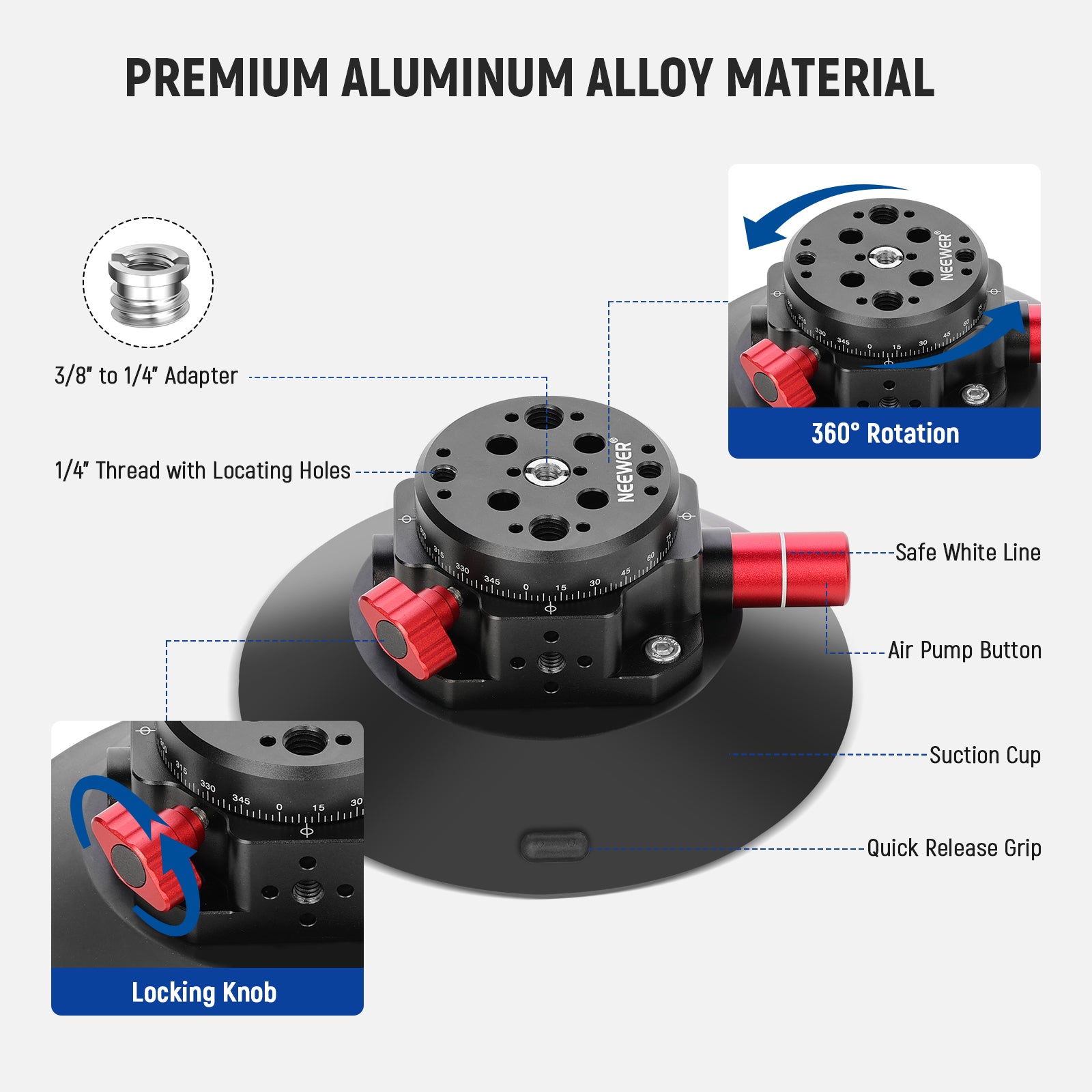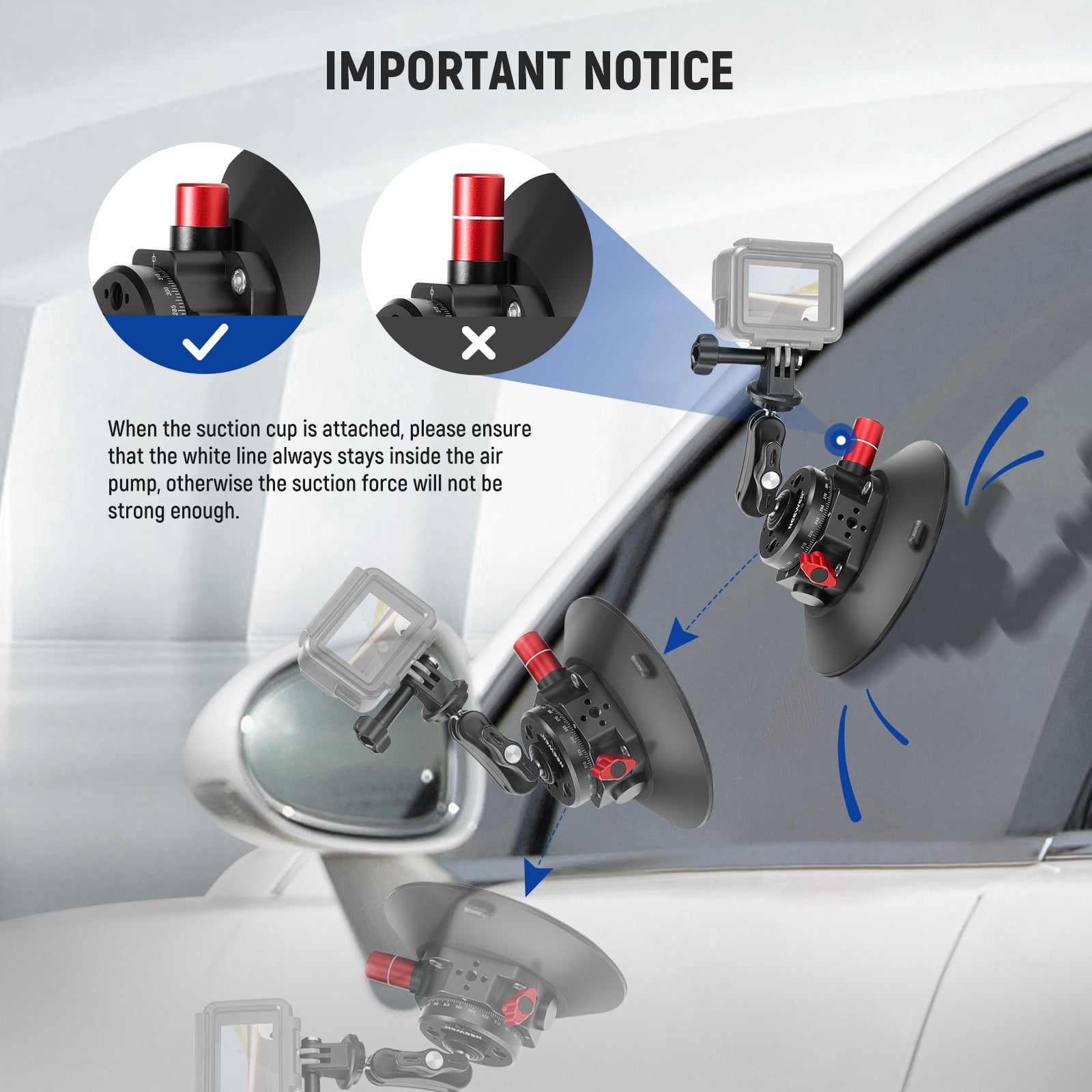 • Potente ventosa con braccio magico - Il kit di accessori CA013 è dotato di una ventosa a vuoto attivata da pompa per aderire alla maggior parte delle superfici e ruotare di 360° una fotocamera mirrorless, una action camera e un telefono. Compatibile con GoPro Hero 12, 11, 10, 9, 8, 7 Black, Go Pro Max, Insta360 X4, X3, Go3, Insta360 Ace Pro, DJI Osmo Action 4, 3, 2, Sony, Canon, Nikon, DSLR, compatibile con AKASO Brave 4 ecc. Un braccio articolato magico con due teste a sfera girevoli da 1/4" monta il tuo dispositivo e offre posizioni di montaggio flessibili.