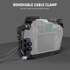- Installazione stabile tramite 3 punti : la gabbia si fisserà saldamente alla tua fotocamera R8 tramite una vite di montaggio da 1/4" e due perni antitorsione che fissano gli occhielli della cinghia della fotocamera. Un cuscinetto in gomma antiscivolo protegge la fotocamera dai graffi aggiungendo ulteriore stabilità