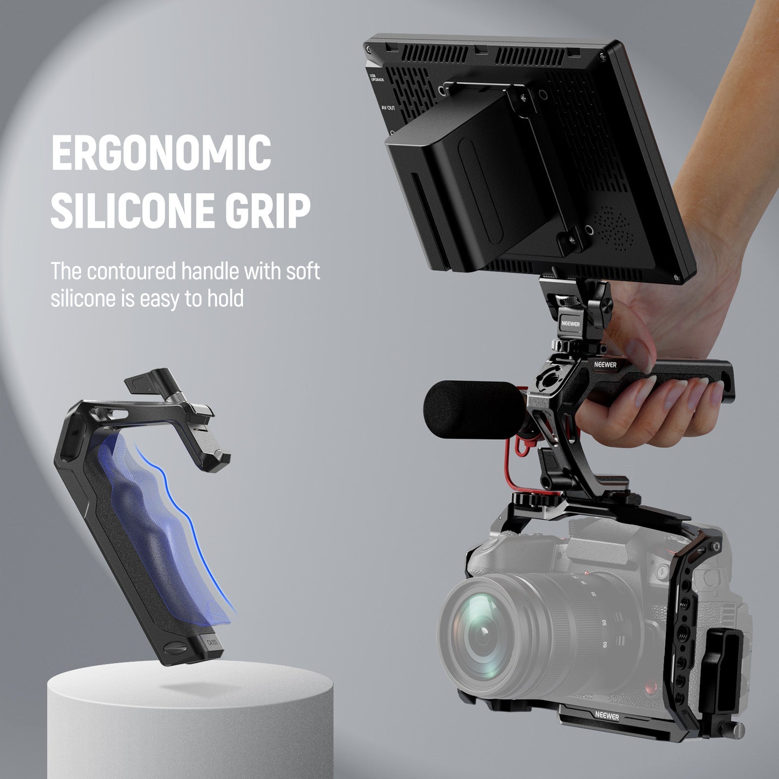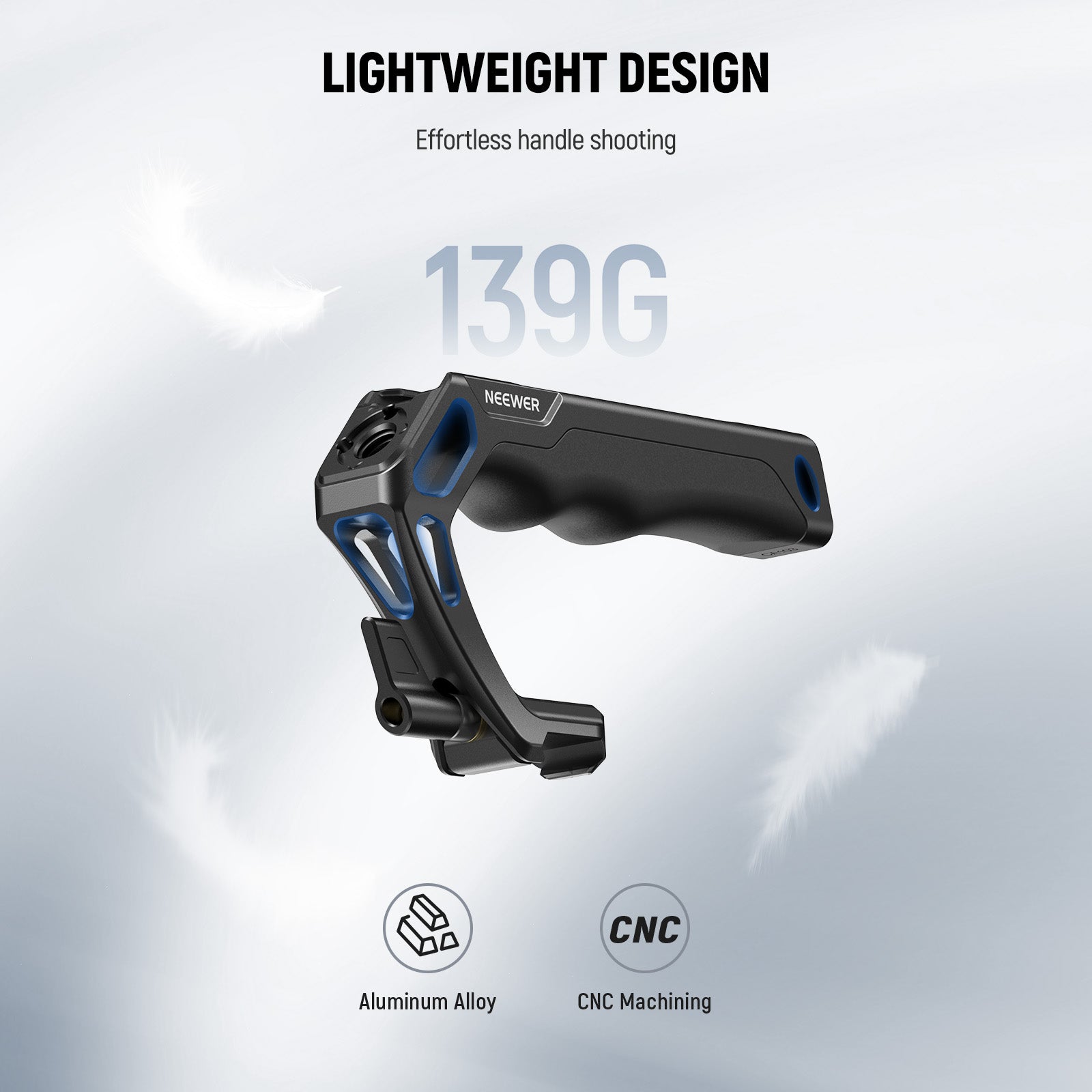- Struttura robusta e leggera - Realizzata in lega di alluminio solida ma leggera, questa impugnatura superiore per fotocamera può supportare una fotocamera fino a 10 kg ed è facile da trasportare in borsa. Il trattamento anodizzato nero resiste a tutte le condizioni esterne e ai graffi.