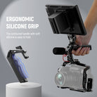 - Impugnatura ergonomica in silicone morbido : un'impugnatura sagomata in silicone offre comfort e stabilità per riprese a basso angolo in movimento
